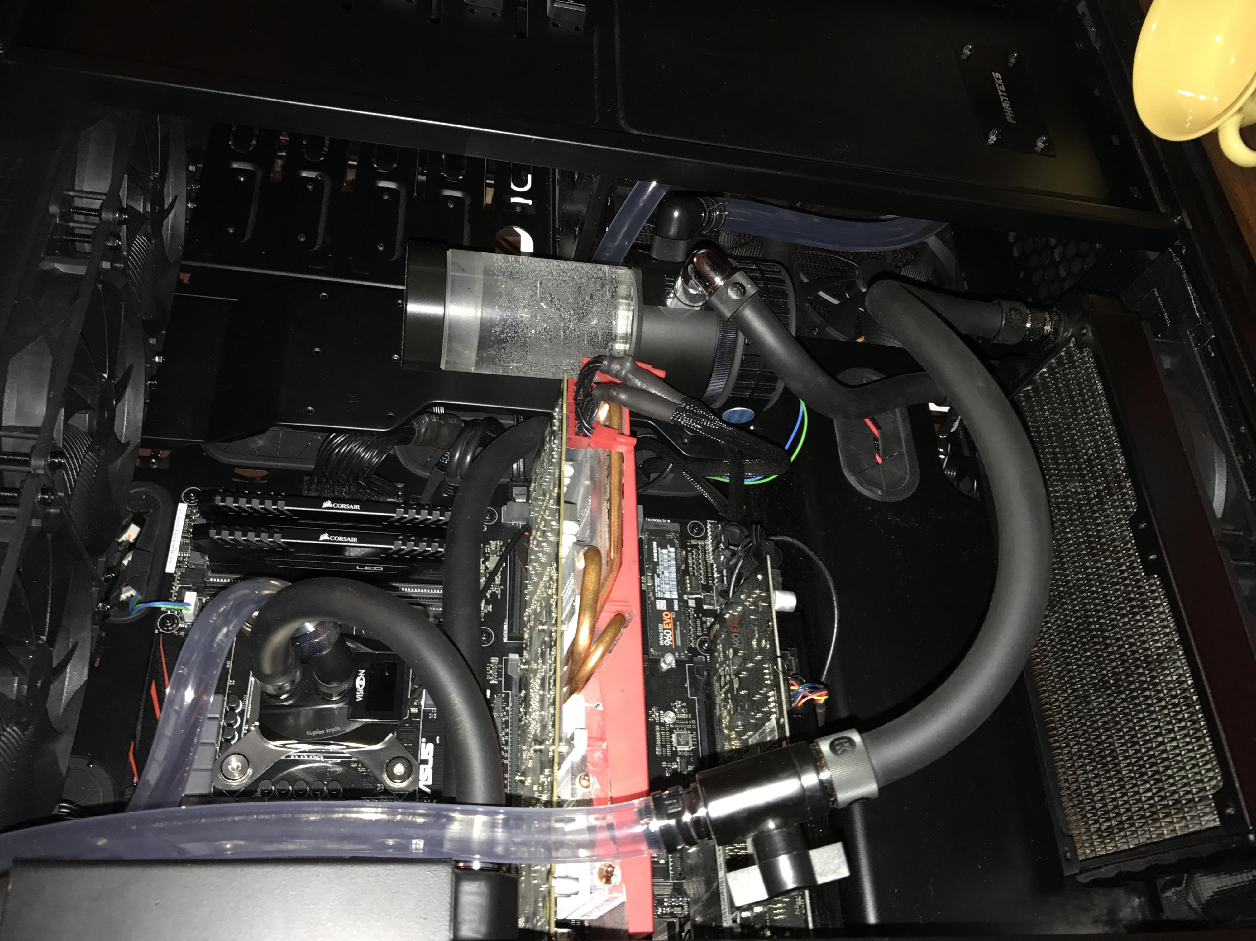 Radiator bekomme ich oben und unten im Gehäuse einen 480er rein. Wenn der für CPU und GPU nicht ausreichen sollte, kann man im dem Gehäuse noch diverse Radiatoren unterbringen. Bisher habe ich mit 2 360ern gearbeitet-AIO-