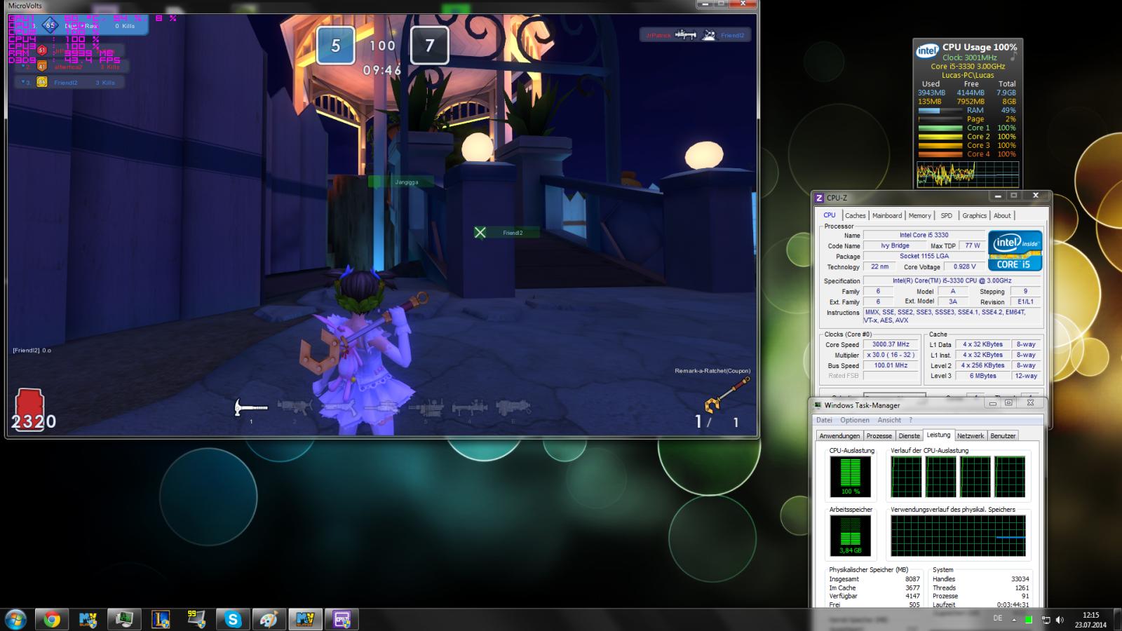 Es ist ganz klar zu sehen, dass der CPU am limit läuft mit seinen 3Ghz und das mit allen 4 Kernen. Das ganze finde ich passt weder zu der Erfahrung von sonic noch zu der von mir.