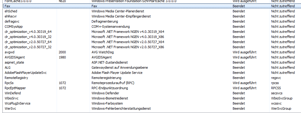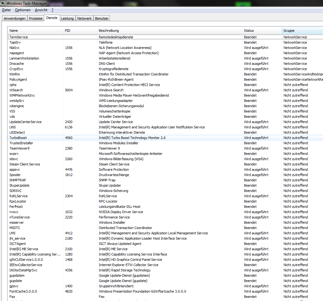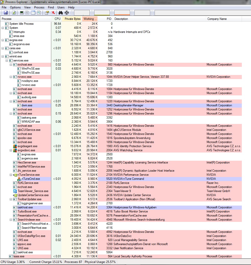 Und deine Prozessliste ist nicht vollständig. Da müsste noch unter Benutzer auch "System" aufgeführt werden. Ein etwas ausführlicher Explorer http://technet.microsoft.com/de-de/sysinternals/bb896653.aspx