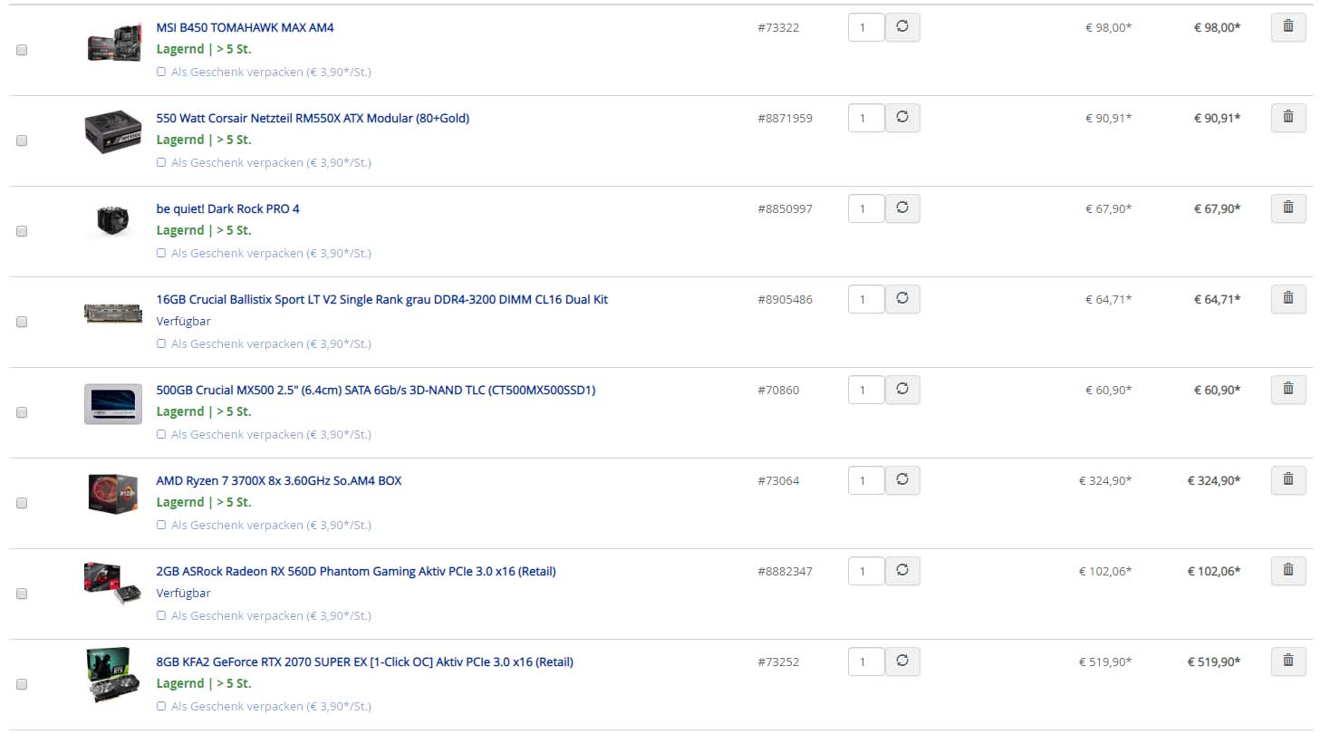 Ich habe einmal einen Vorschlag angehängt. Kann gerne alles günstiger sein. Oder auch umgekehrt - wenn es sein muss auch teurer. Gehäuse und Lüfter habe ich. Grafikkarte wird nicht benötigt. Daher war meine Idee eine Onboard-Grafik?