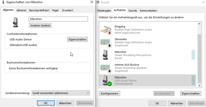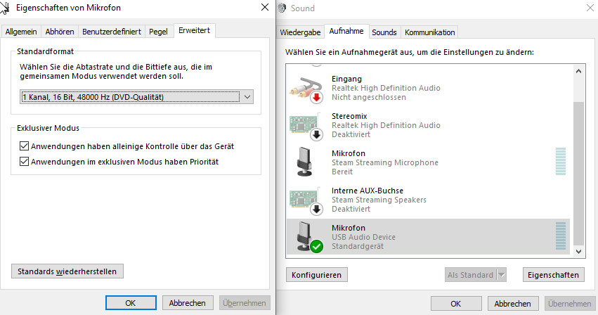 Auch beim testen bei einem Bekannten am Onboard ist sehr sehr leise dort wurde auch Pegel auf 100 und Mikrofonverstärkung auf +30db gestellt, auch hier miserable Ergebnisse..man versteht mich da zwar leise im TS aber der TS Pegel schlägt max bis -25 aus.