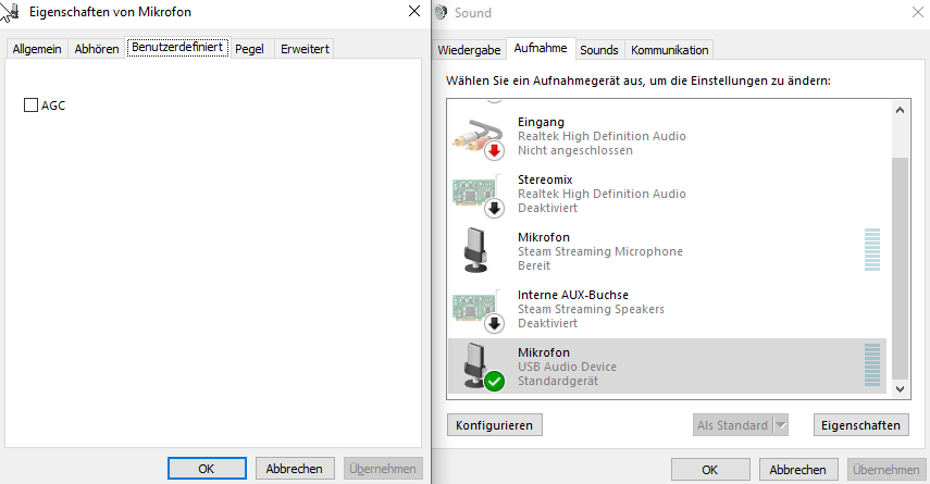 Wie ist das bei dir, musst du trozt der kleinen USB-Karte noch die Mikrofonverstärkung hochdrehen ?