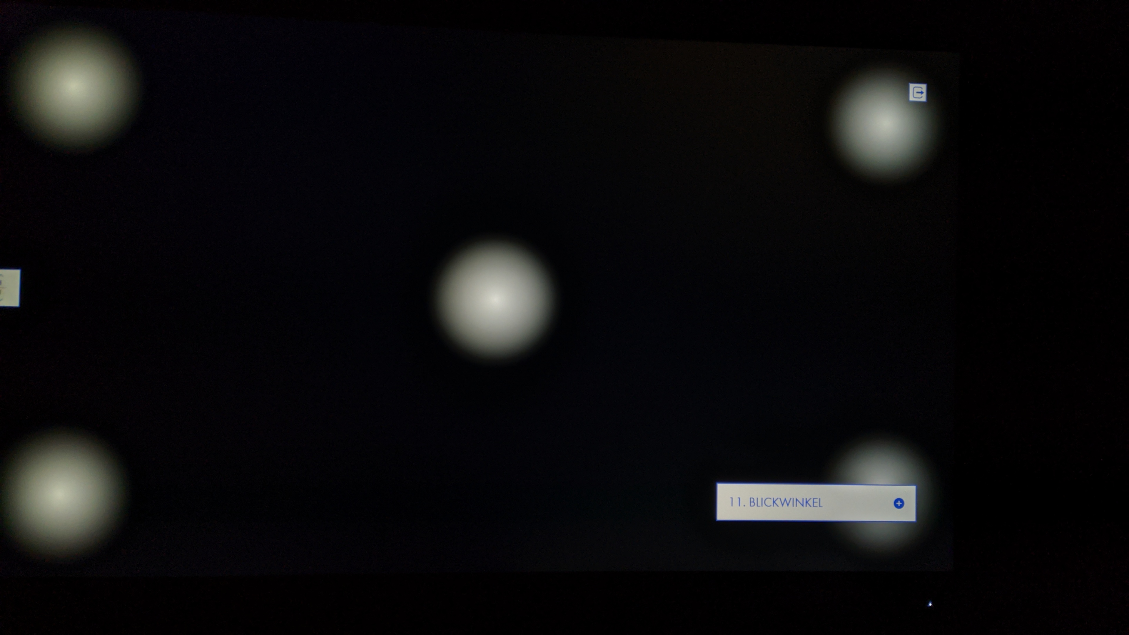 Eizo-Test, schwarzer Hintergrund, Raum dunkel, BLB-Foto mit runtergestellter Belichtung. Mal sehen, wie sich Office-Monitore da schlagen. Und natürlich Freesync testen ......... Ach nee, da ist ja die Intel-Grafik.