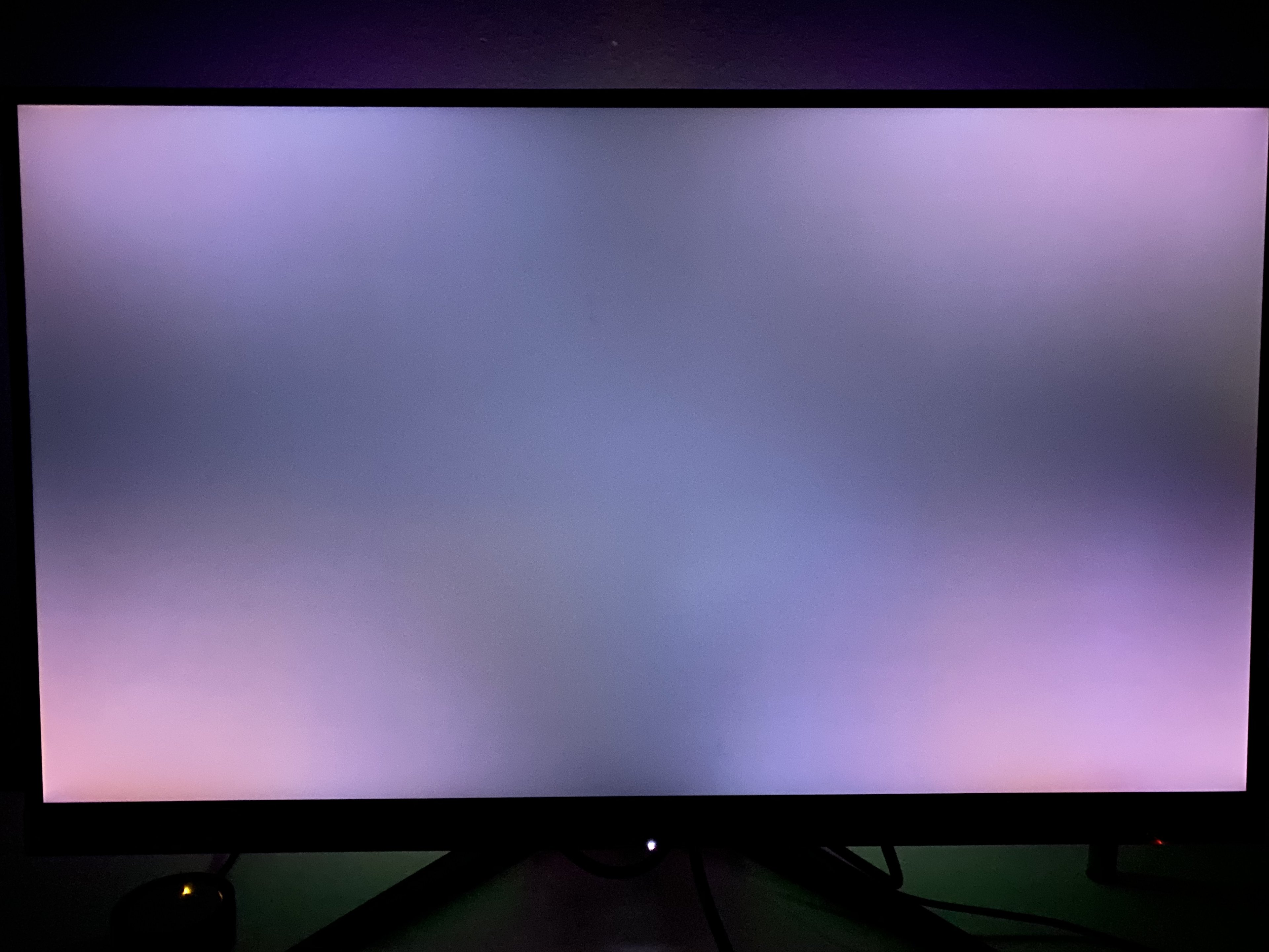 Monitor eingeschaltet mit schwarzem Bild aus einem ips glow test auf youtube.