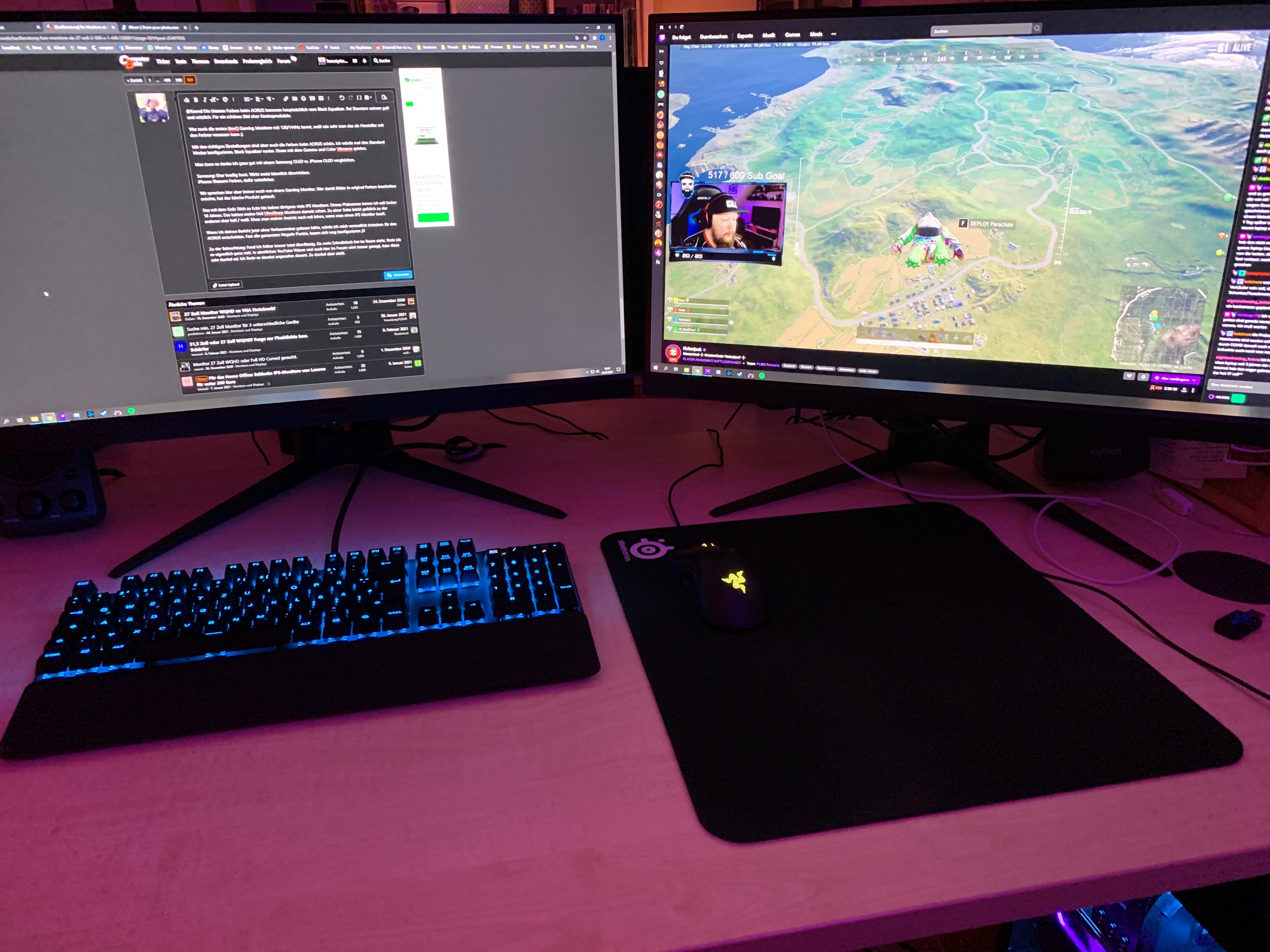 Blau: Beim MSI geht das in manchen Szenen, sticht sich das Blau schon etwas mit dem Lila (bin ein Mann, da gibt es nur Lila), wohingegen beim Aorus die Farbe satt, klar und nicht übertrieben ist, nicht diesen Neon Effekt hat wie in Rot.