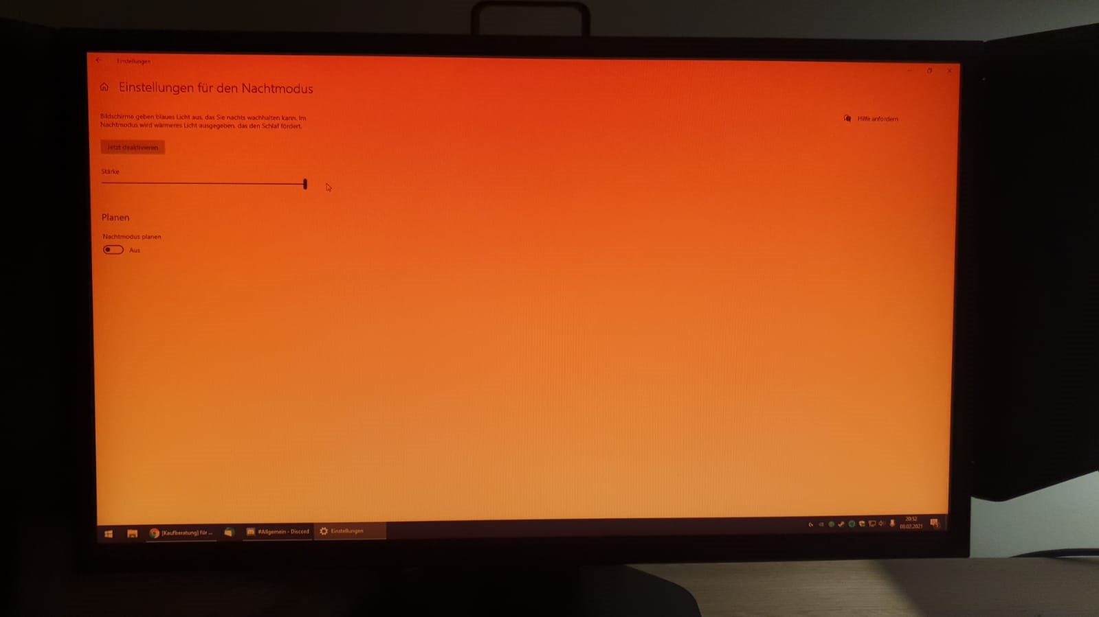 Leider hat dieser einen sehr schlechten Farbverlauf, welcher extrem im Nachtmodus von Windows 10 deutlich wird. (siehe Screenshot).