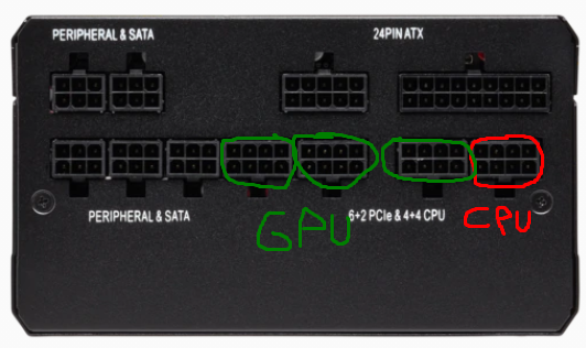 24pin fürs MB, 4/8pin für die CPU, 6/8pin für die graka, SATA für, wer hätte es gedacht, SATA-laufwerke und ggfs beleuchtung/lüftersteuerung, Molex ggfs für lüftersteuerung oder ältere karten etc.