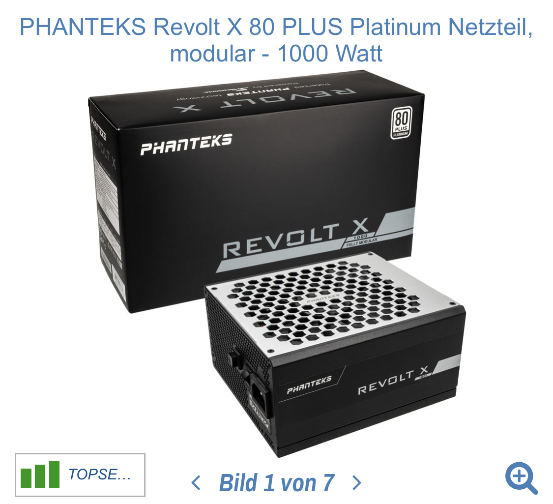 Jetzt habe ich natürlich weil mir das NT von meiner Freundin so gut gefällt , auch bei Phanteks geschaut und zwar kommt das in frage siehe Bild unten . Bin schon sehr interessiert am TX 1000 oder Revolt X