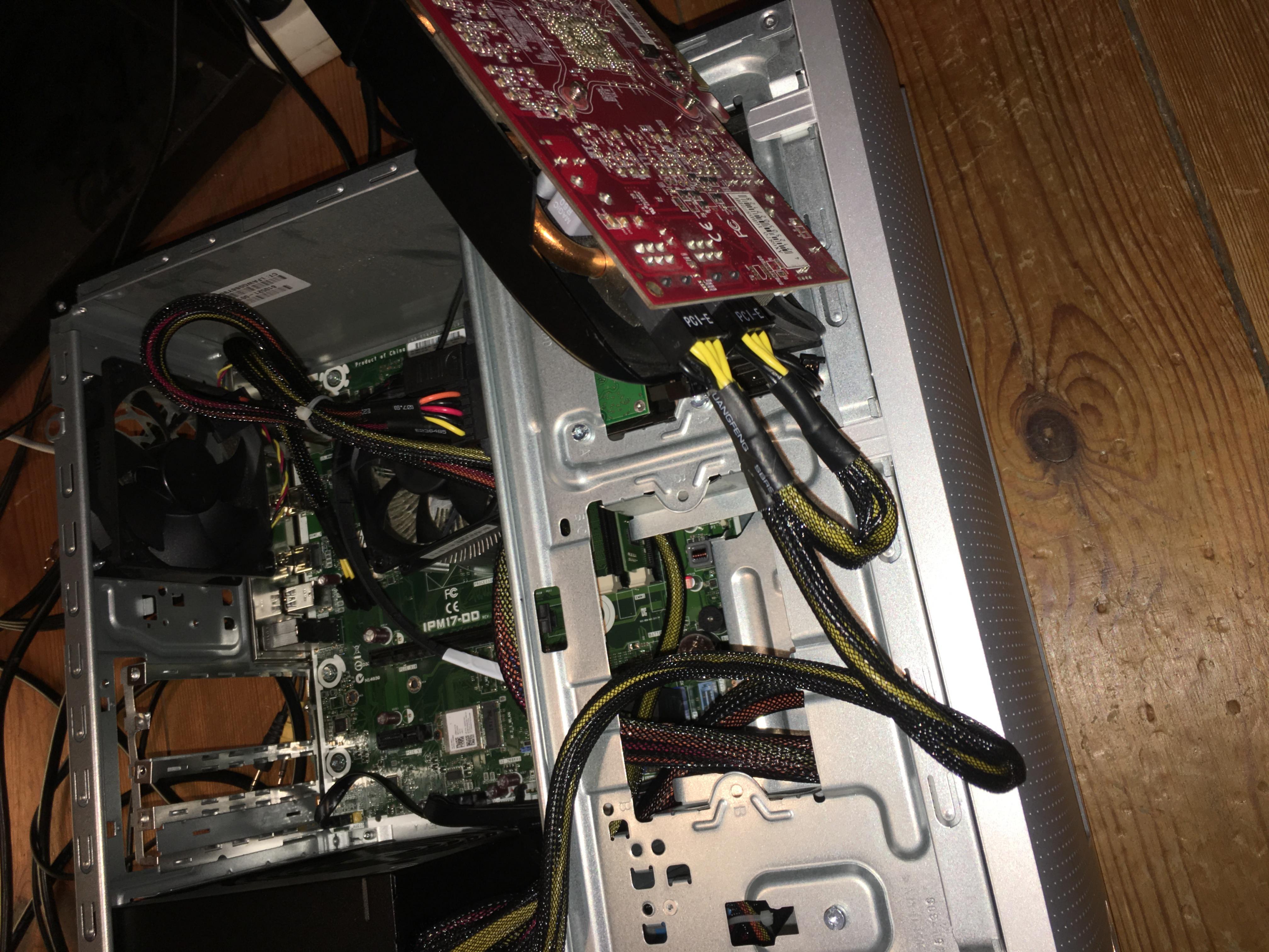 - Die Grafikkarte, die im Moment drinn ist, ist laut Internet 'so schnell wie eine Scheibe Wurst', deshalb war mein Arbeitskollege so nett und hat mir seine alte zur Verfügung gestellt (AMD HD 6870). Auch nicht das neuste aber ich denke das reicht eeeerstmal.