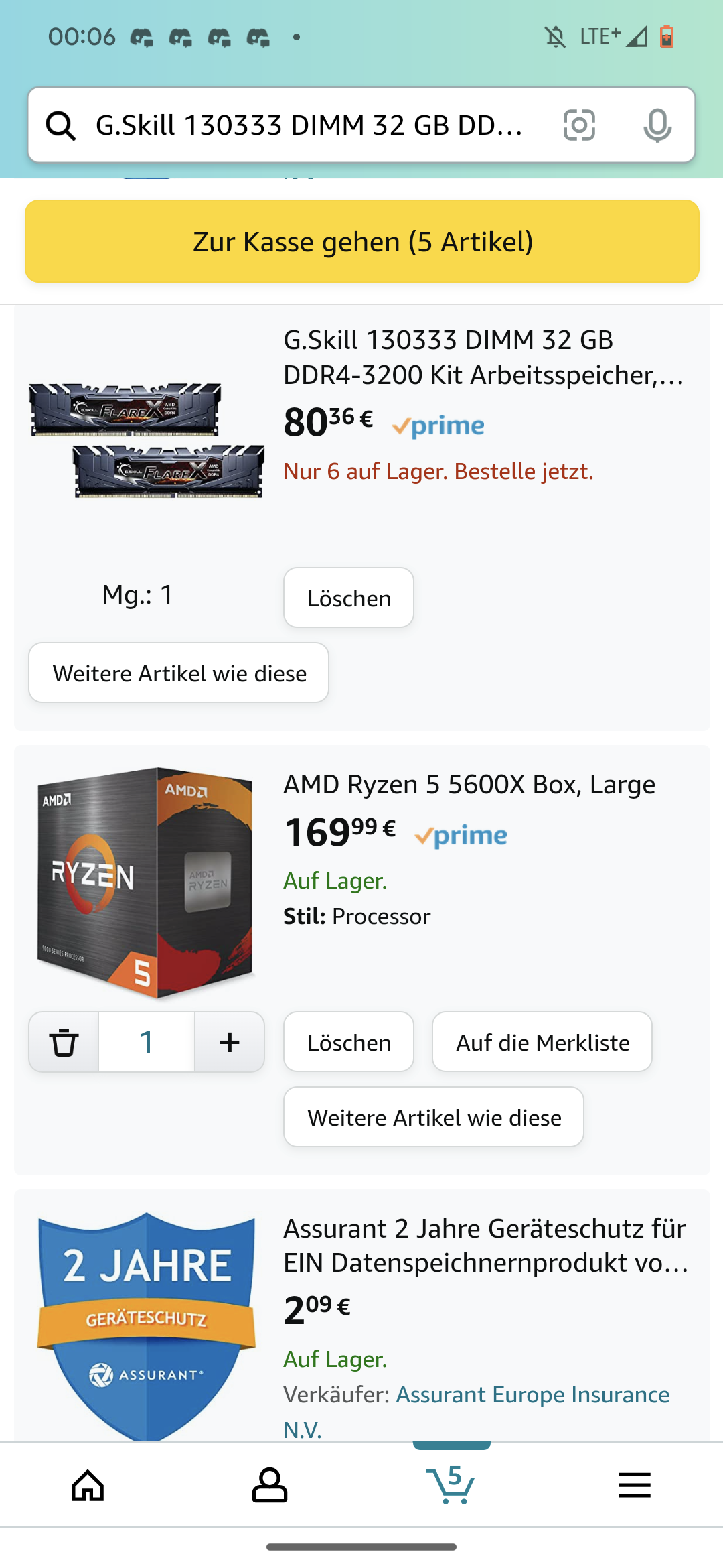 CPU: Ryzen 5 3600 (6K/12T 3.60GHz / Turbotakt 4,20Ghz)
