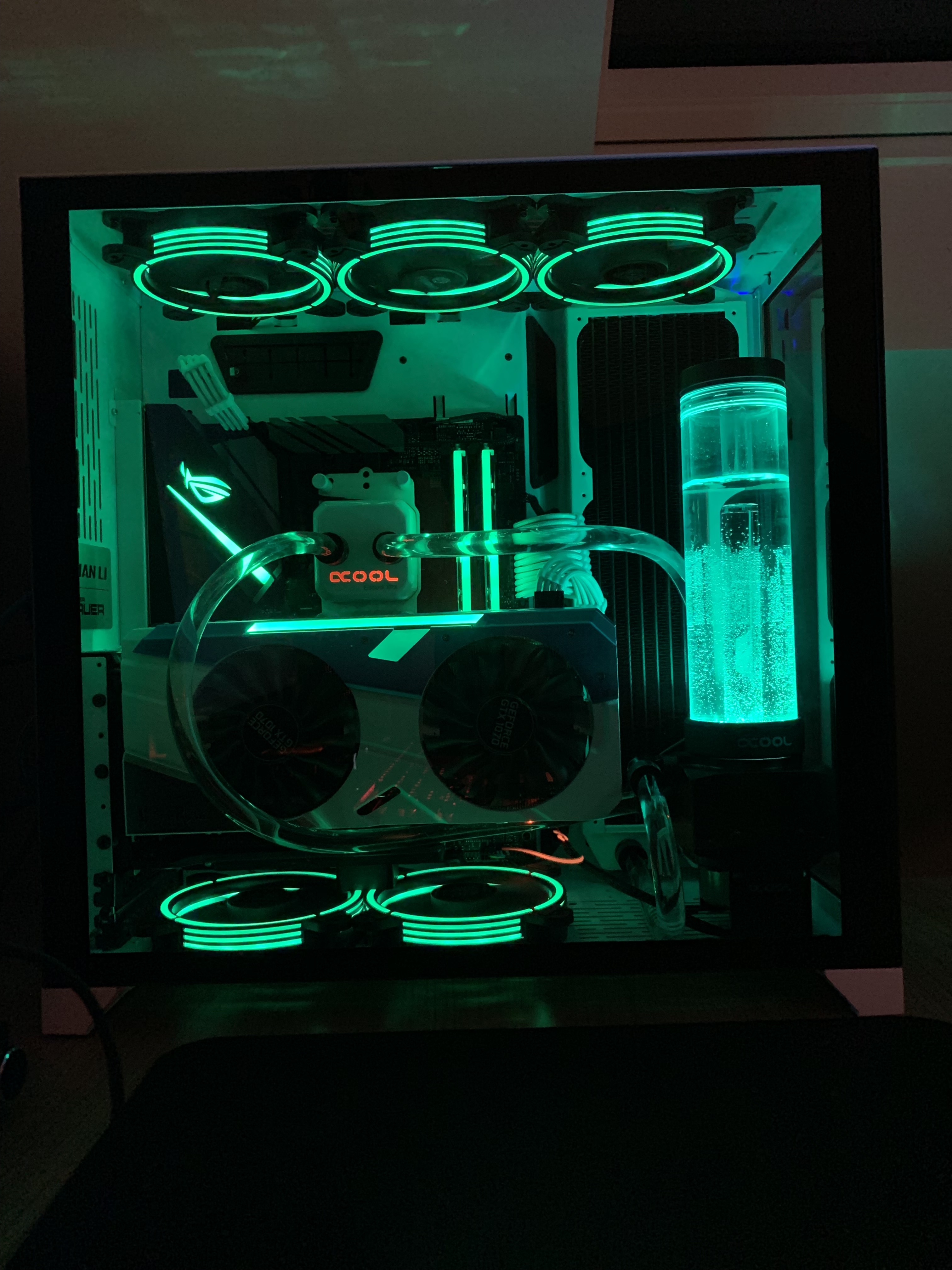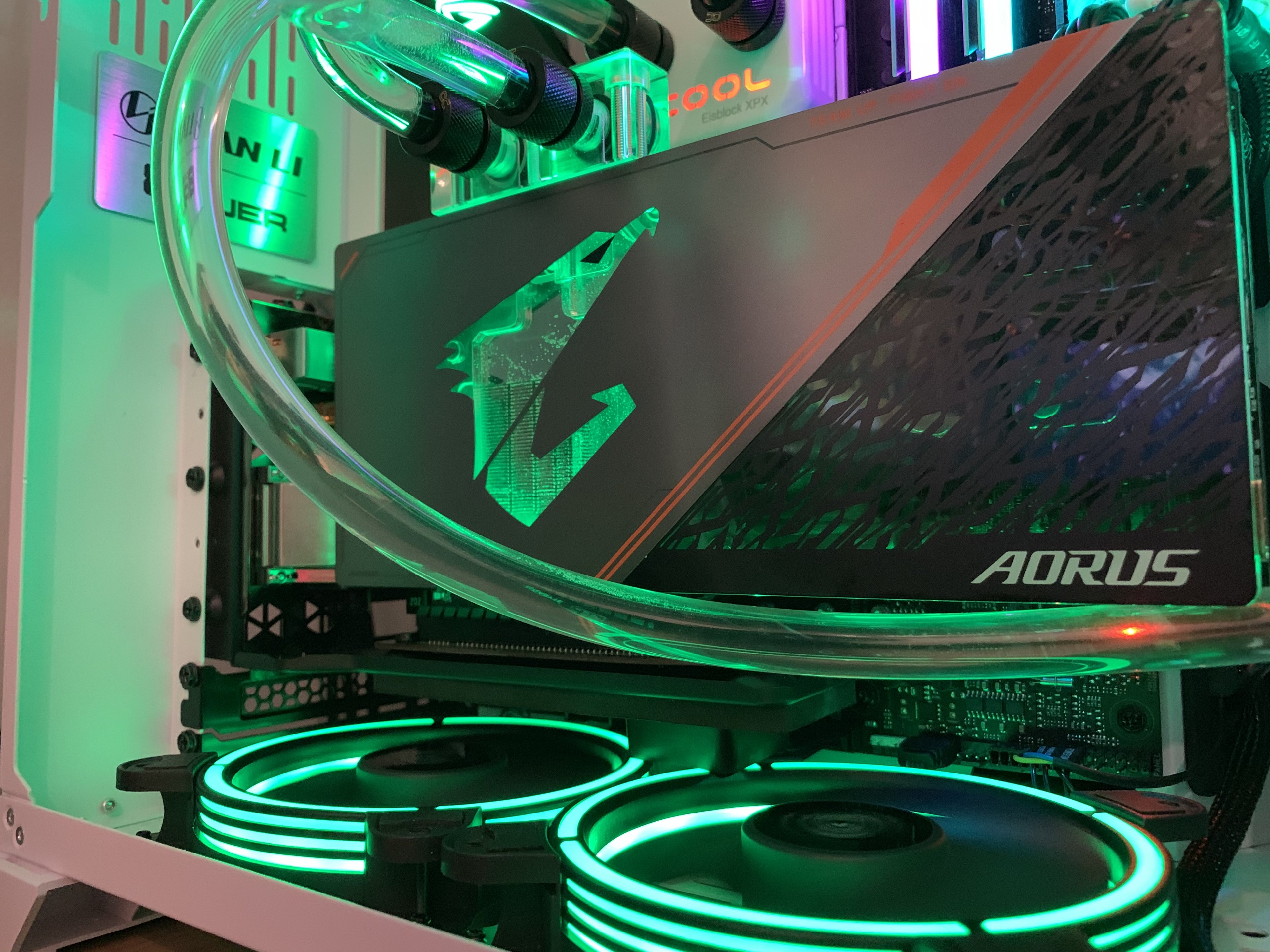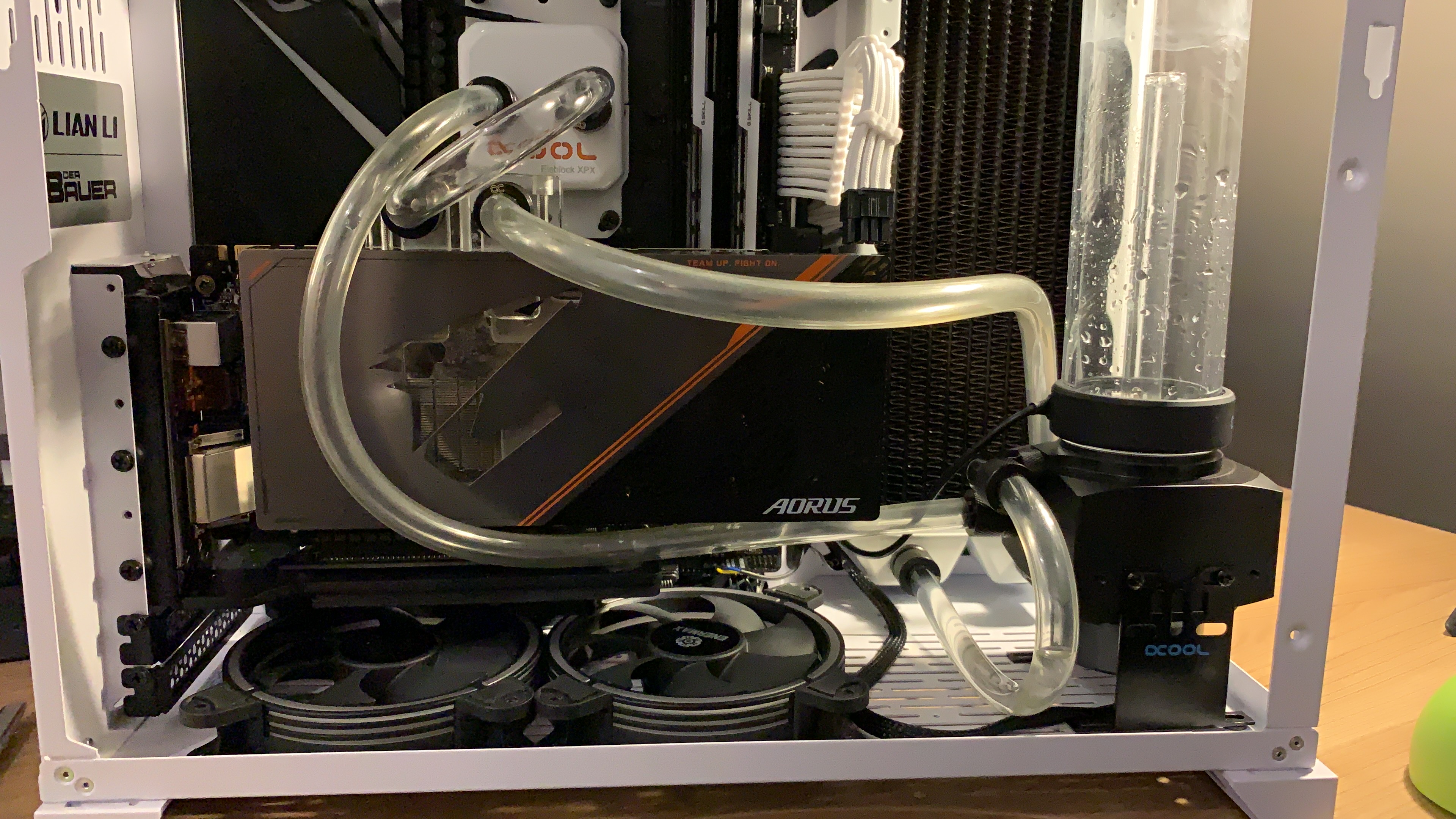 So bekommst du den Schlauch der nach oben hin weg geht zum Großteil vom Schlauch hinter den oberen Lüftern versteckt und kannst dann im Prinzip direkt aus dem Radiator oben ins AGB (wenn es oben Ports hat).