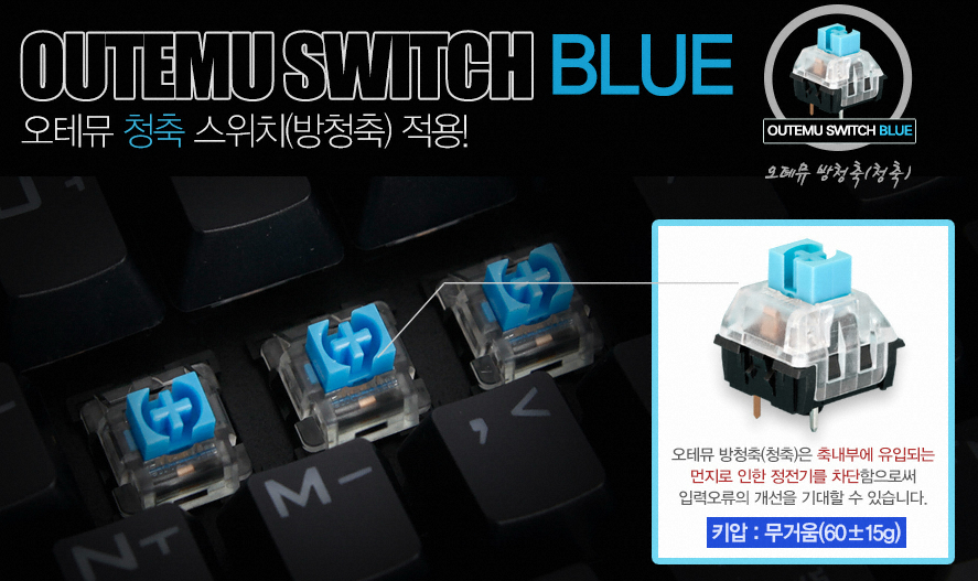 Ich habe mir die erste Mecha-Tastatur gekauft (Aukey KM-G7) und festgestellt, dass die blauen Outemu-Switches, welche im wesentlichen Clone der MX-Blue-Switches sein sollen, so einen seltsamen rechteckigen Rahmen haben, der wohl gegen Staub schützen soll.