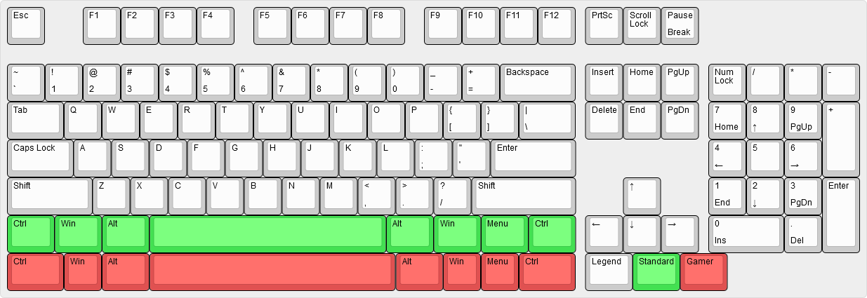 Grün: Standard Bottom row, rot: nicht-Standard (z.B. razer, Corsair)