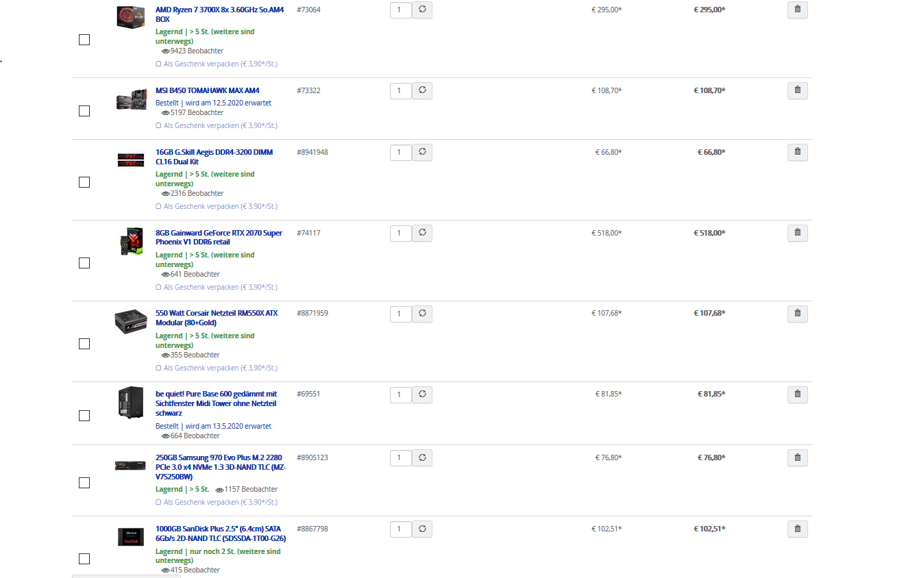Zum Gehäuse: Schau dich mal bei Corsair um, die haben echt gut durchdachte Gehäuse und gerade die mit dem Glas sehen verdammt sexy aus. Die Verarbeitung ist gut, falls du mal was kaputt machst bekommst du idr auch direkt über Corsair die Ersatzteile, ich kann mir z.b. für ~28€ ein komplett neues Seitenteil mit Sichtfenster nachbestellen, wenn ich mich dann doch mal zu sehr über die Kratzer aufregen sollte
