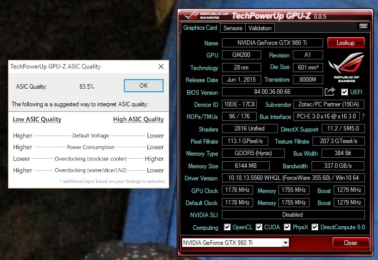 PS: die ASIC meiner PALIT ist ne Katastrophe. Trotzdem schafft sie 1500MHz im Boost (OC) und 2000MHz auf dem Speicher, mit 1°C Temperaturzuwachs. Hab mir persönlich noch keine feste Meinung zum ASIC machen können, aber für den normalen Anwender ist der Wert wohl völlig irrelevant...