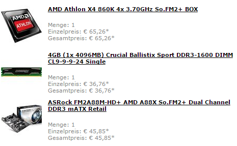 Ich habe ein anderes Board genommen,so bleibt mir noch 40 Euro übrig für einen Besseren Kühler/Netzteil