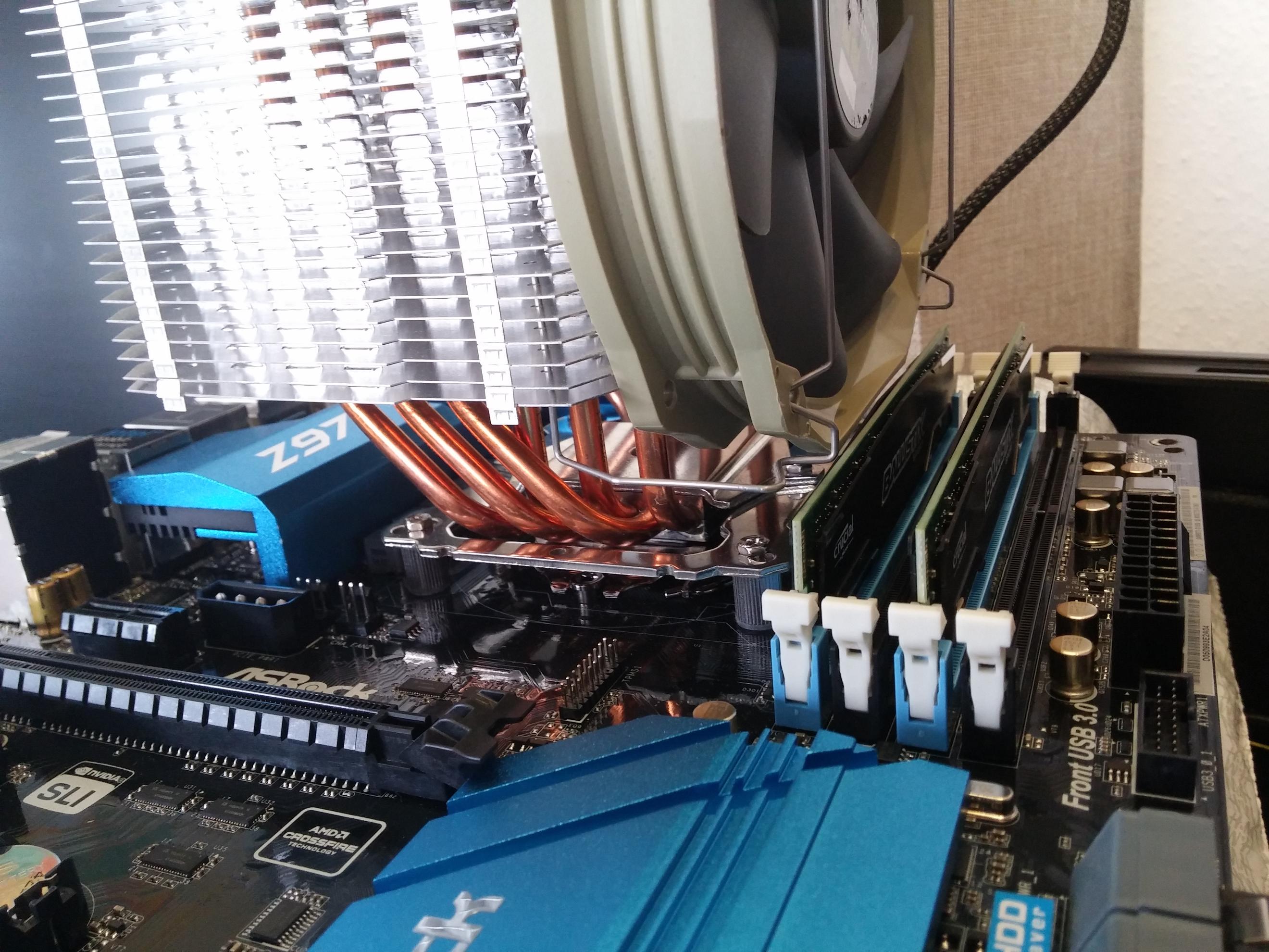 Habe heute meinen alten Thermalright HR-02 Macho Rev. A nun auf dem ASRock Z97 Extreme 4 verbaut. Das ist echt ein knappes Ding mit dem RAM, aber es hat noch gepasst. Denke, dass RAM mit größeren RAM-Kühlern nicht mehr passen würden.