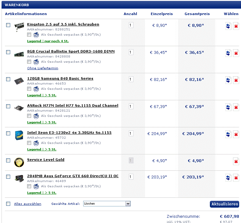 4. Kompatiblität: Die Komponenten müssen gut zusammen harmonieren. Mein aktueller Rechner ist der Beste Beweis, wie sowas in die Hose gehen kann. Ich musste einige Komponenten tauschen, bis der Rechner sauber, also ohne Konflikten lief.