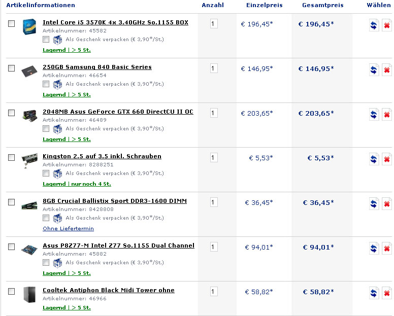 Bitte um Eure Meinung - Aktuelle Auswahl an Komponenten