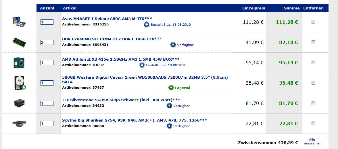 Ich habe auch schonmal eine Beispielkonfiguration gemacht, kaufen wollte ich das Ganze in 1-2 Monaten. Wenn bis dahin irgendwas weltbewegendes auf dem Markt erscheinen soll, was ich verpasst habe, könnt ihr das auch gerne schreiben. Ich kann auch noch ein bißchen warten.