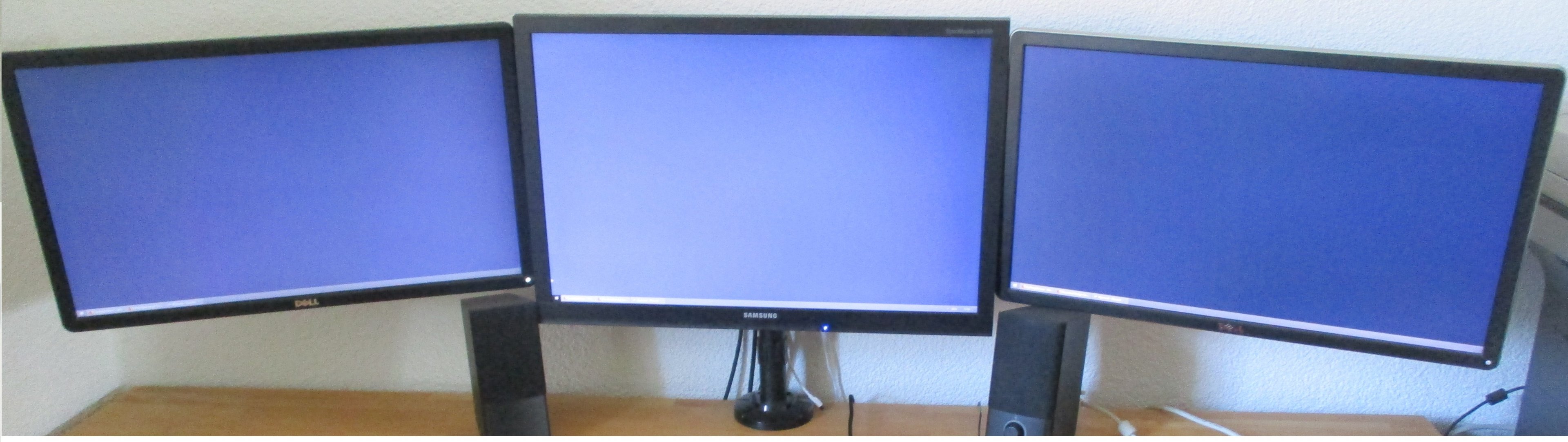 ich hoffe Ihr könnt mir helfen. Es geht um Folgendes: ich brauche einen neuen Monitor. Momentan habe ich ein Multimonitoring-Set, das aber schon in die Jahre gekommen ist. Bild anbei. Es handelt sich um einen Syncmaster SA450 und 2x Dell P2314H. Ihr seht schon, von aktuellen Monitoren weit entfernt. Ich mag aber den Platz den ich habe. Auf dem Hauptschirm spiele oder arbeite ich auf dem Linken habe ich sämtliche Kommunikation und auf dem rechten Bildschirm recherchiere ich bzw. schaue ich Filme/Serien etc.. An den Platz habe ich mich gewöhnt und möchte ihn ungerne aufgeben.