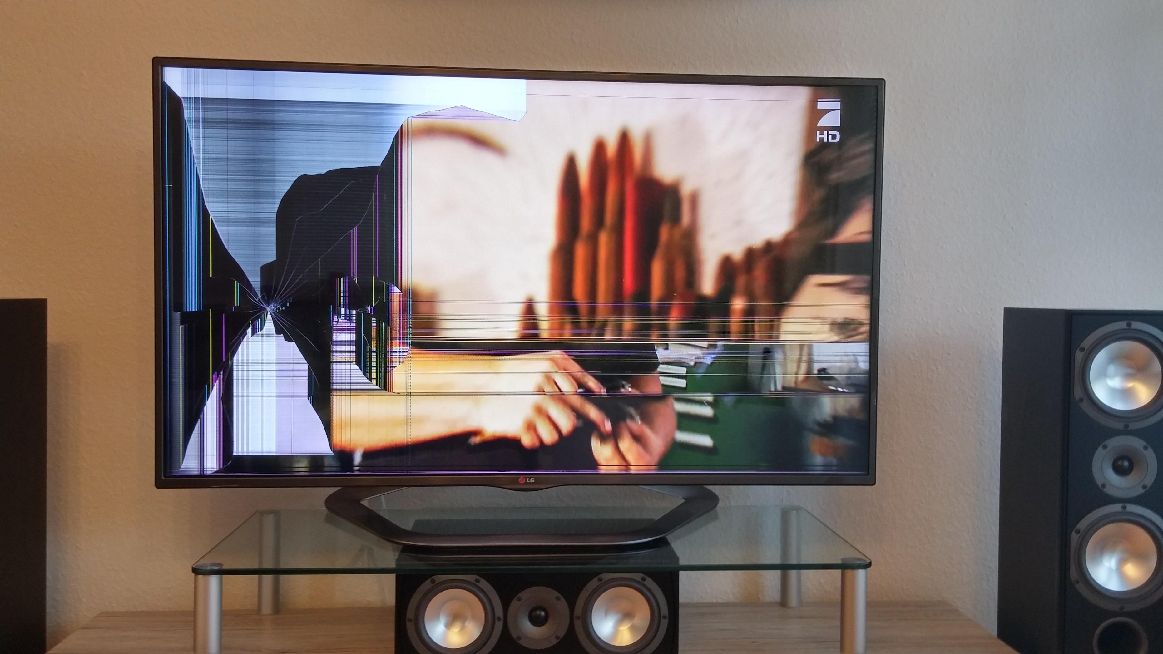 habe gerade als ich mir aus meinem Regal eine Bluray holen wollte einen leichten Kreislaufausfall gehabt (schwarz vor augen und dann war ich weg und fand mich begraben unter meinem tv wieder) den ich nun wie ihr auf dem bild sehen könnt damit zerstört habe :(