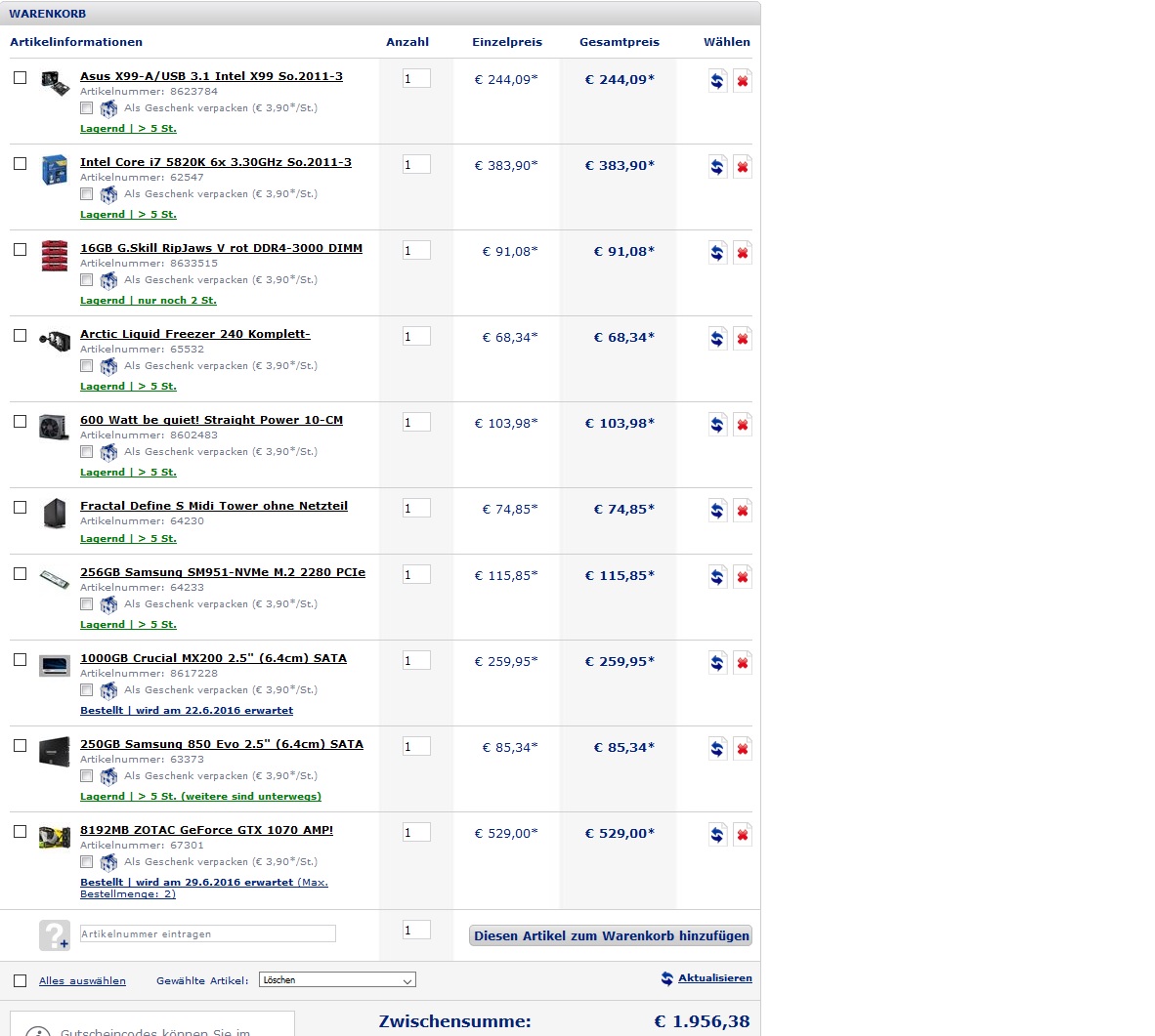 Den PC habe ich mir mal zusammengestellt. Preislich gehen momentan noch 80€ Cashback von Intel und Asus runter :)