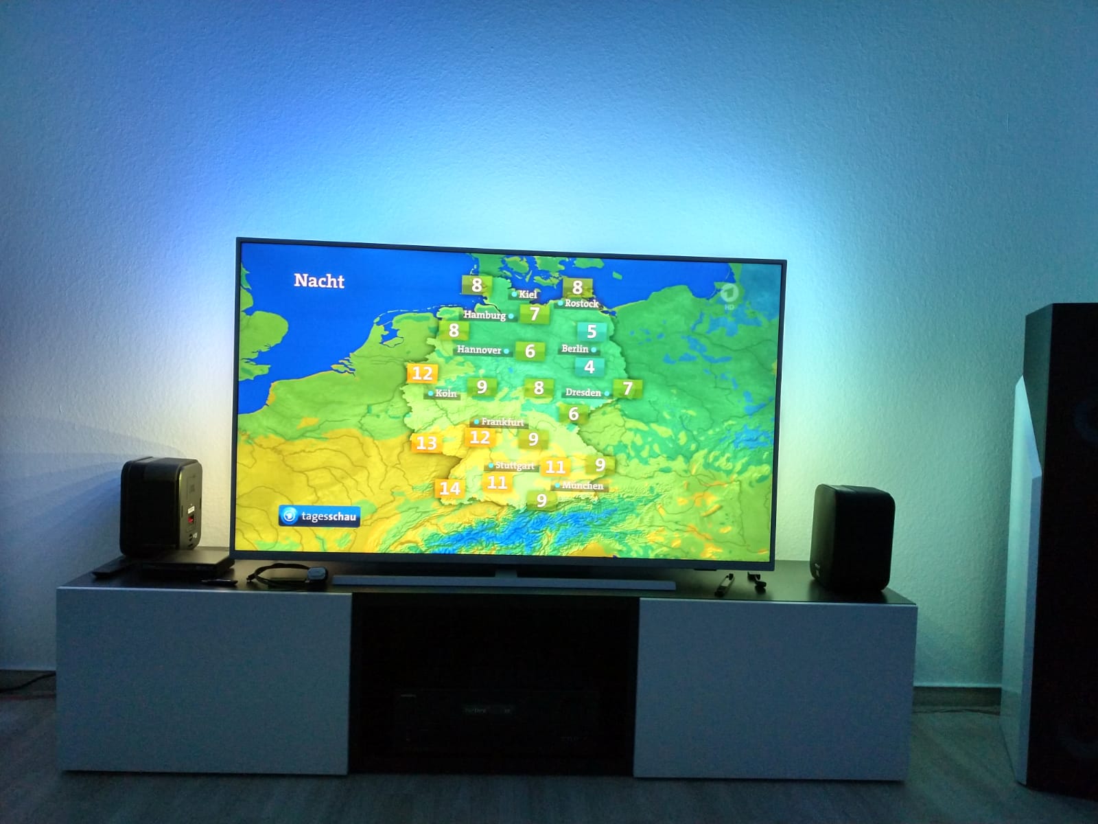 Anbei mal zwei Bilder vom Ambilight. Aufgestellt ca. 25cm von der Wand entfernt.