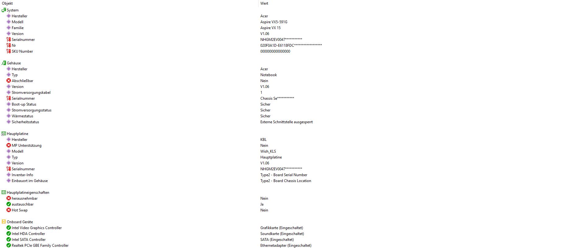 Bilder von den Spezifikationen meines Laptops sind beigefügt.