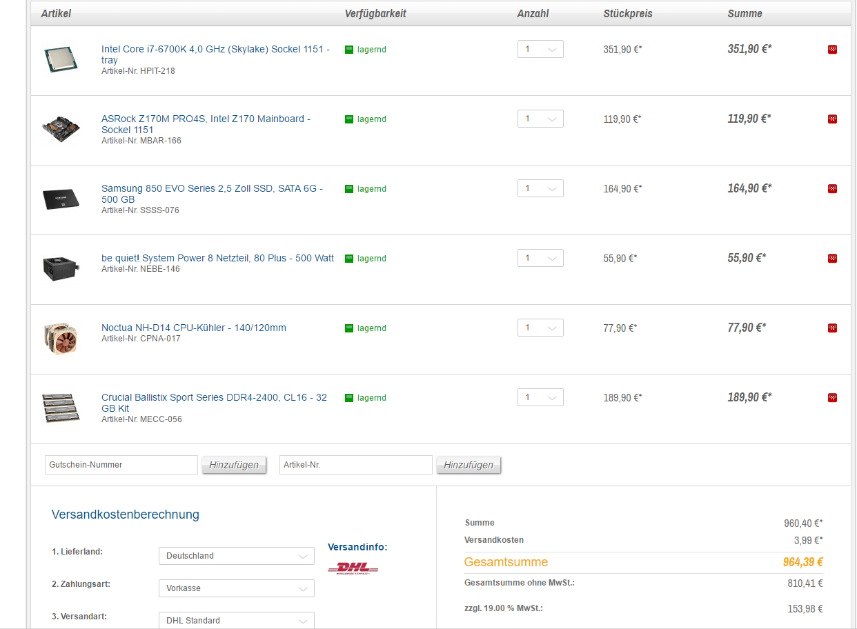 CPU mit 6 oder 8 Kernen (+ Hyper-Threading)