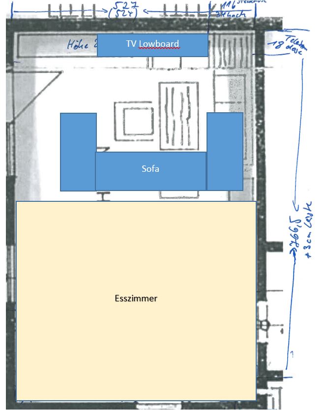 Sitze ca. 4 Meter weg - Front sind 3 Meter breite (also das lowboard)