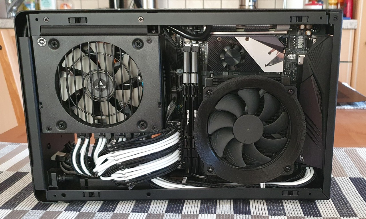 Das NT wird durch 2 180er 4cm!!!! tiefe Lüfter "entlastet". Wenn die Teile über 500RPM drehen, wird Luftzirkulation im gesamten Zimmer in Bewegung gesetzt. 3080/5900x OC bei 600W Abwärme haben das Torrent lächerliche 600RPM(knapp 50%) abverlangt. Also bei maximal möglicher Abwärme der GPU+CPU. Am Netzteil ein Plus um 5c. Von 21c auf 26c. Unter normaler Belastung werden knapp 24/25c erreicht.Müritzer schrieb:Na ja die warme Luft von der GPU, die können die Gehäuse ganz schön aufheizen, durch das NT nach draußen zu befördern ist ja nicht so gut.