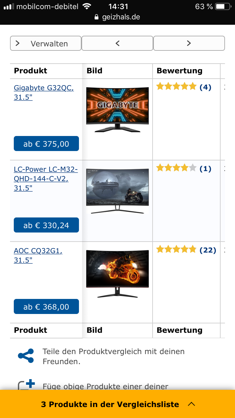 Die 3 Monitore sind in meine engere Auswahl ? Welche Empfehlung habt ihr