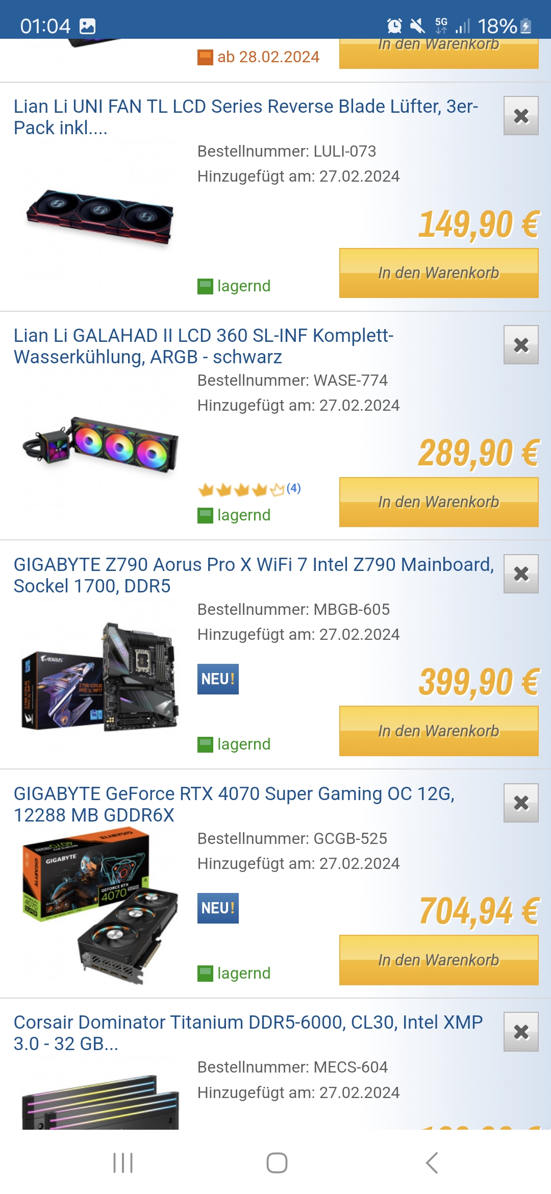5. Hast du noch einen alten PC, dessen Komponenten teilweise weitergenutzt werden könnten? (Bitte mit Links zu den Spezifikationen beim Hersteller oder Preisvergleich!)
