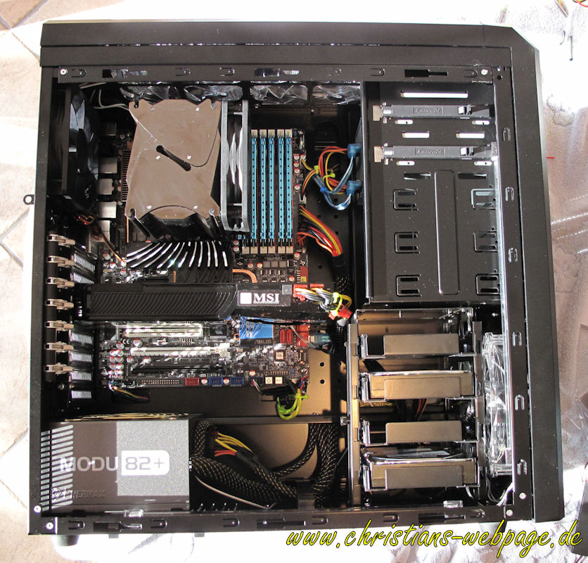 . ganz wichtig: das Netzteil soll unten sein und der HDD Käfig ist quer zum Gehäuse!