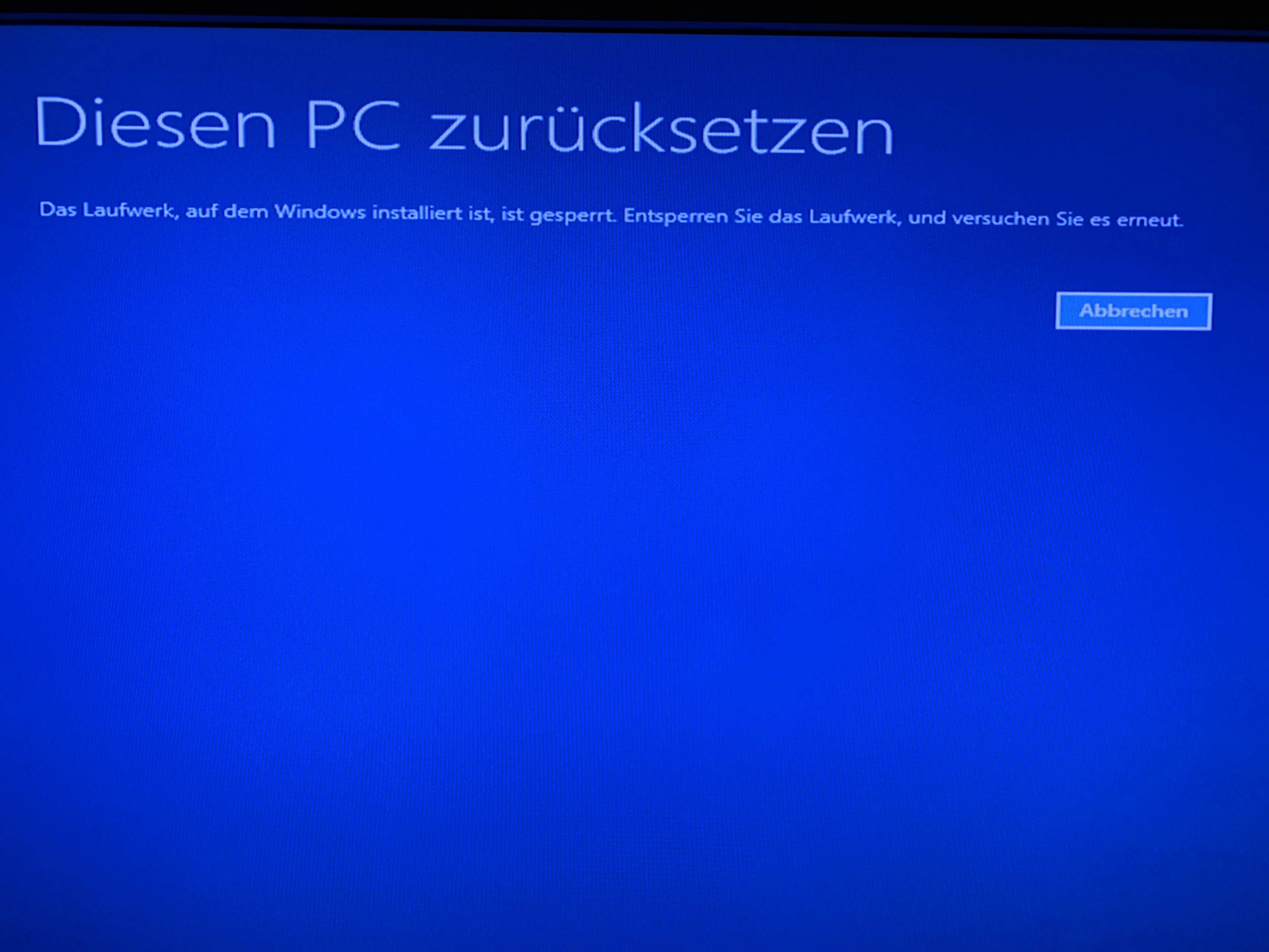 Bei welcher Bootoptionsauswahl kommt das mit dem "Zurücksetzen" und dass was gesperrt sei?