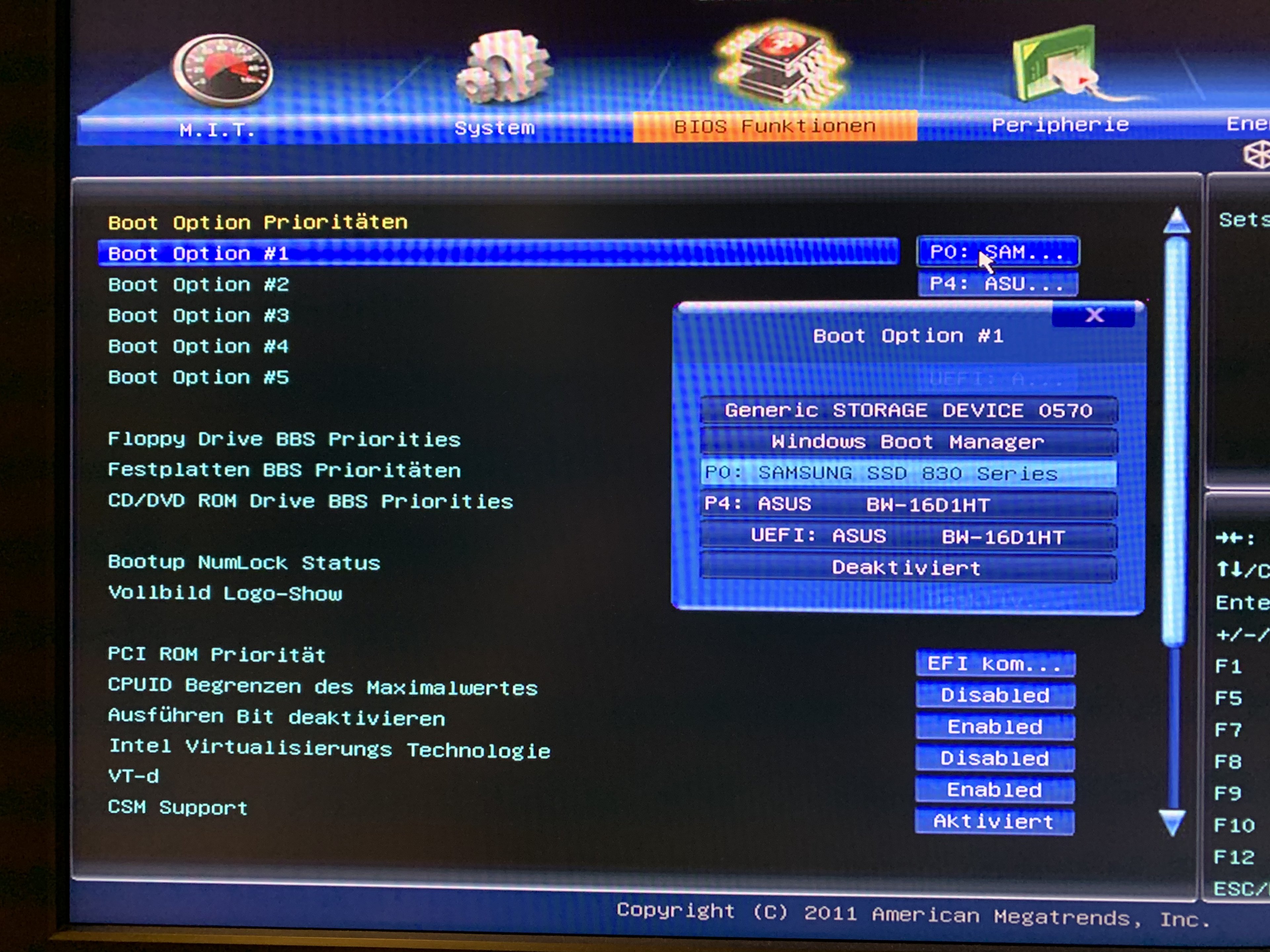 Hast du einfach mal alle Boot Optionen durchgetestet? Außer die Asus-Option, weil die ja dein Laufwerk ist.