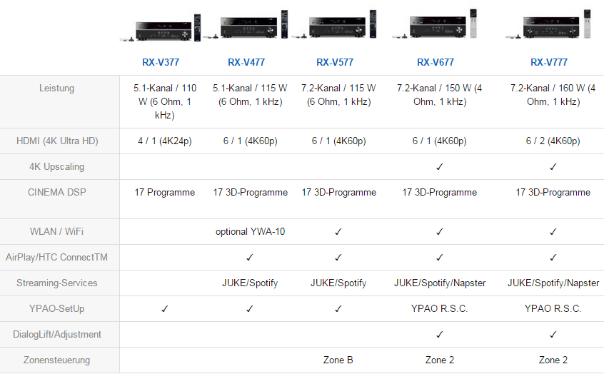 Schau Dir mal zum Beispiel diese Tabelle von aktuellen Yamaha-AVRs an: