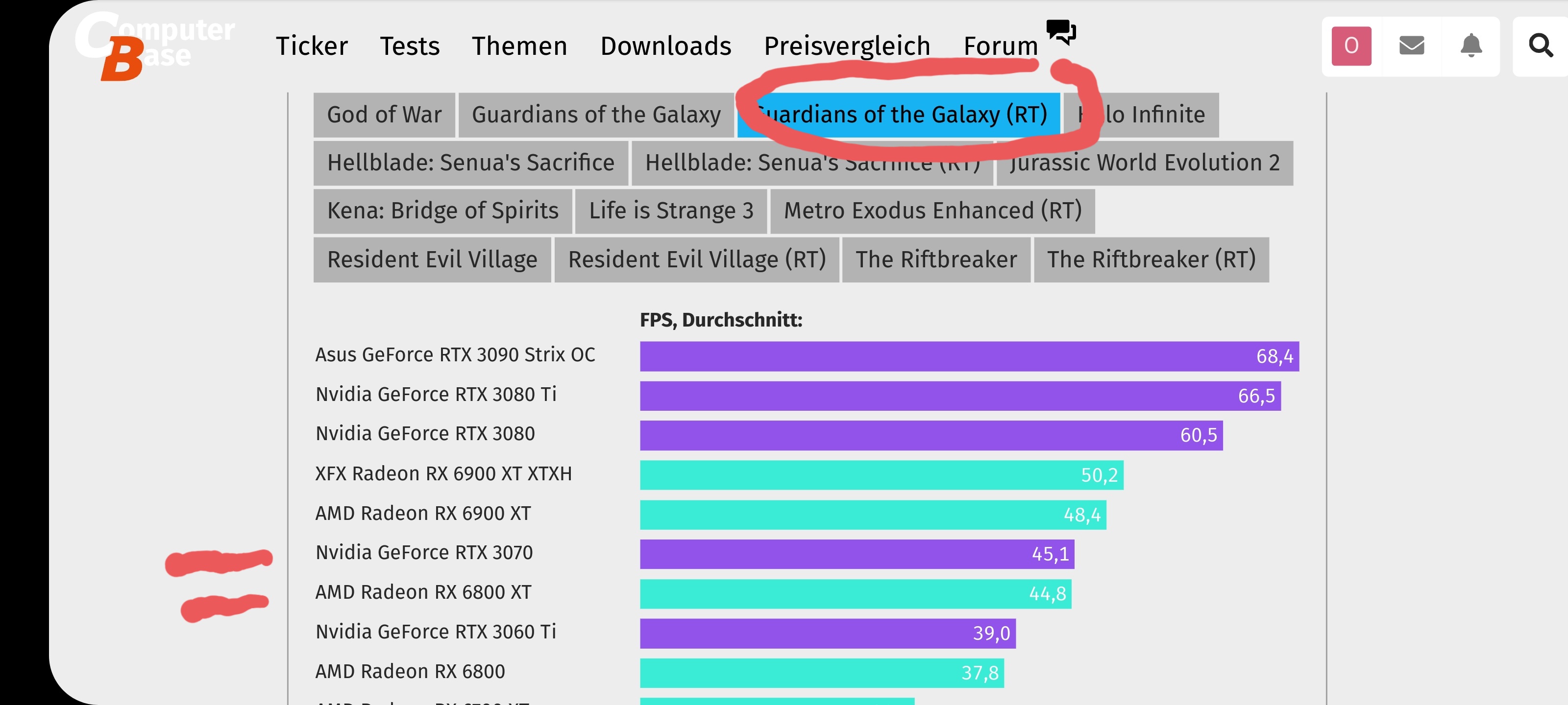 P.S. hier ein Punkt im Screenshot der mich irritiert. Dort wäre die 3070 nur ein wenig besser als die 6800XT, für mich bedeutet das, die 3070Ti wäre kaum schneller. Dann hätte ich mit der RX 6800XT gute RT Leistung und noch deutlich besseres nonRT. Der Mehrwert würde dann ja für die AMD sprechen. Mit FSR wäre dann doch noch mehr drinne?