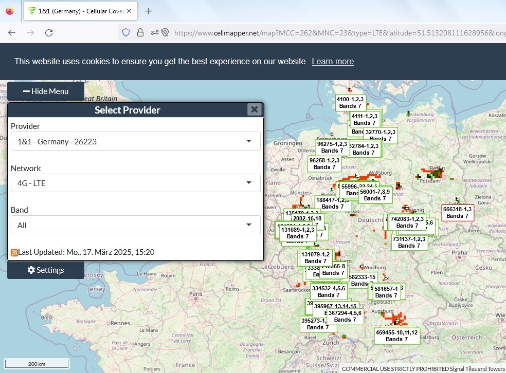 Sondern man ist komplett auf nichtkommerzielle Drittanbieter wie das Cellmapper-Projekt angewiesen, wo man sieht das es z.B. jetzt auch in Augsburg, Offenburg, Saarbrücken, Oldenburg und Brandenburg an der Havel erste Standorte gibt die vor ein paar Monaten noch nicht da waren.