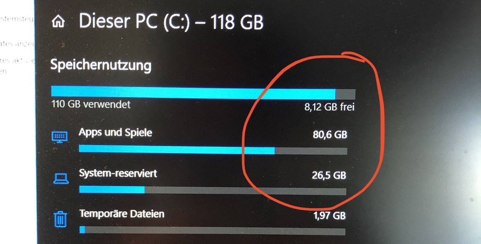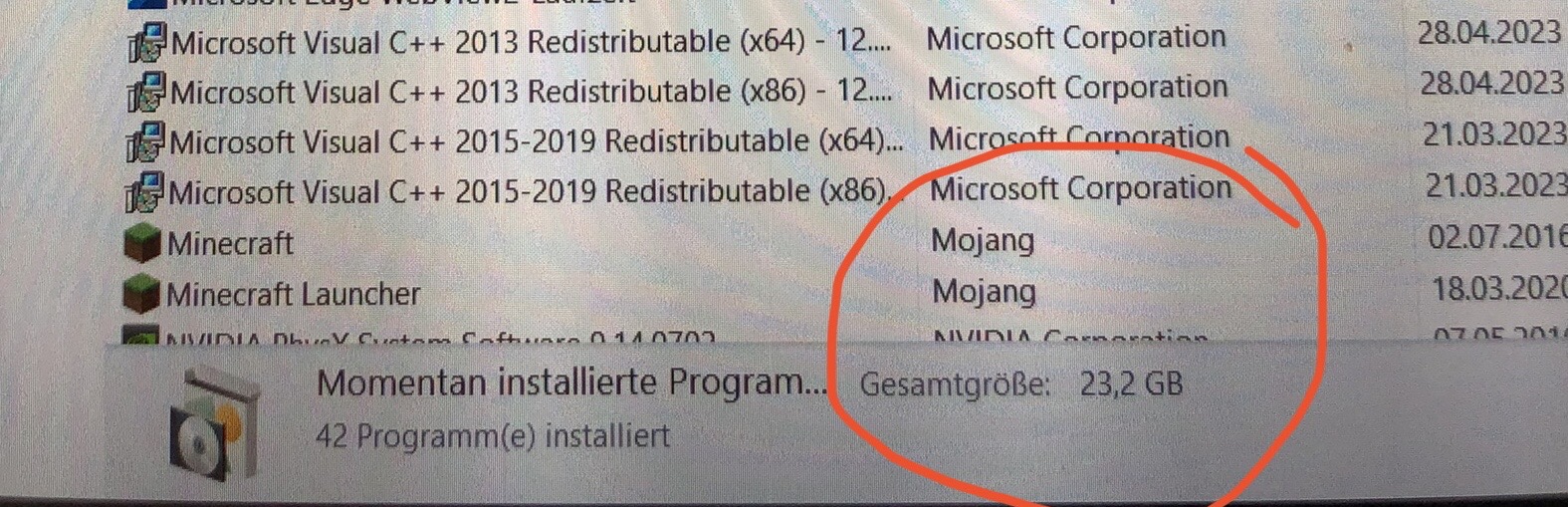 Nun ist mir aufgefallen dass bei der Speichernutzung von C: (wo ich den Speicherplatz brauche) 80,7 GB bei Apps und Spiele angezeigt wird (die größte Anwendung hat allerdings nur ca 700 MB), in der Systemsteuerung unter Programme und Features werden allerdings nur 23,2 GB momentan installierte Programme angezeigt (und das auf allen Laufwerken etc, nicht nur C:!).