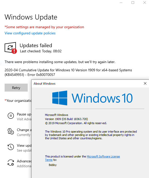 Ausgerechnet auf meiner MainMachine lässt sich das Update vom gestrigen Patchday nicht installieren. Weder von Windows-Update, noch manuell heruntergeladen. Es gibt eine nichtssagende Fehlermeldung.