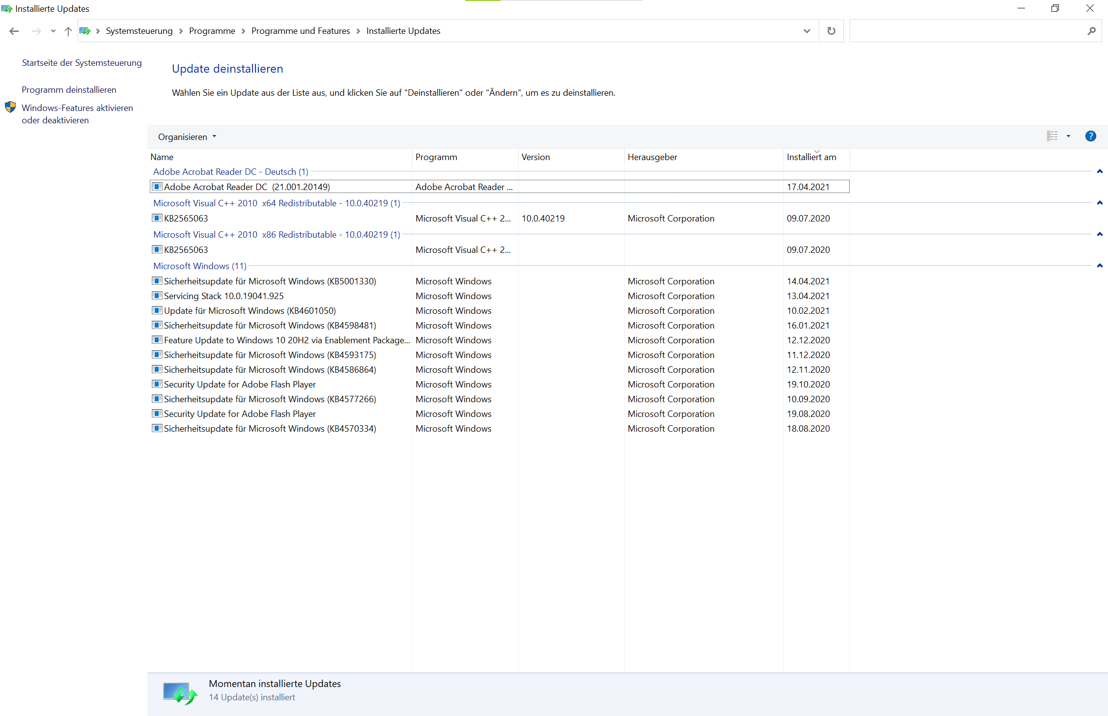 Die verschwinden aber nur aus der Übersicht in der alten Systemsteuerung. Im "neuen" Updateverlauf sehe ich sie weiterhin.areiland schrieb:KB5001330 ersetzt KB5000802 und 5001567 und entfernt auch ihre Verläufe.