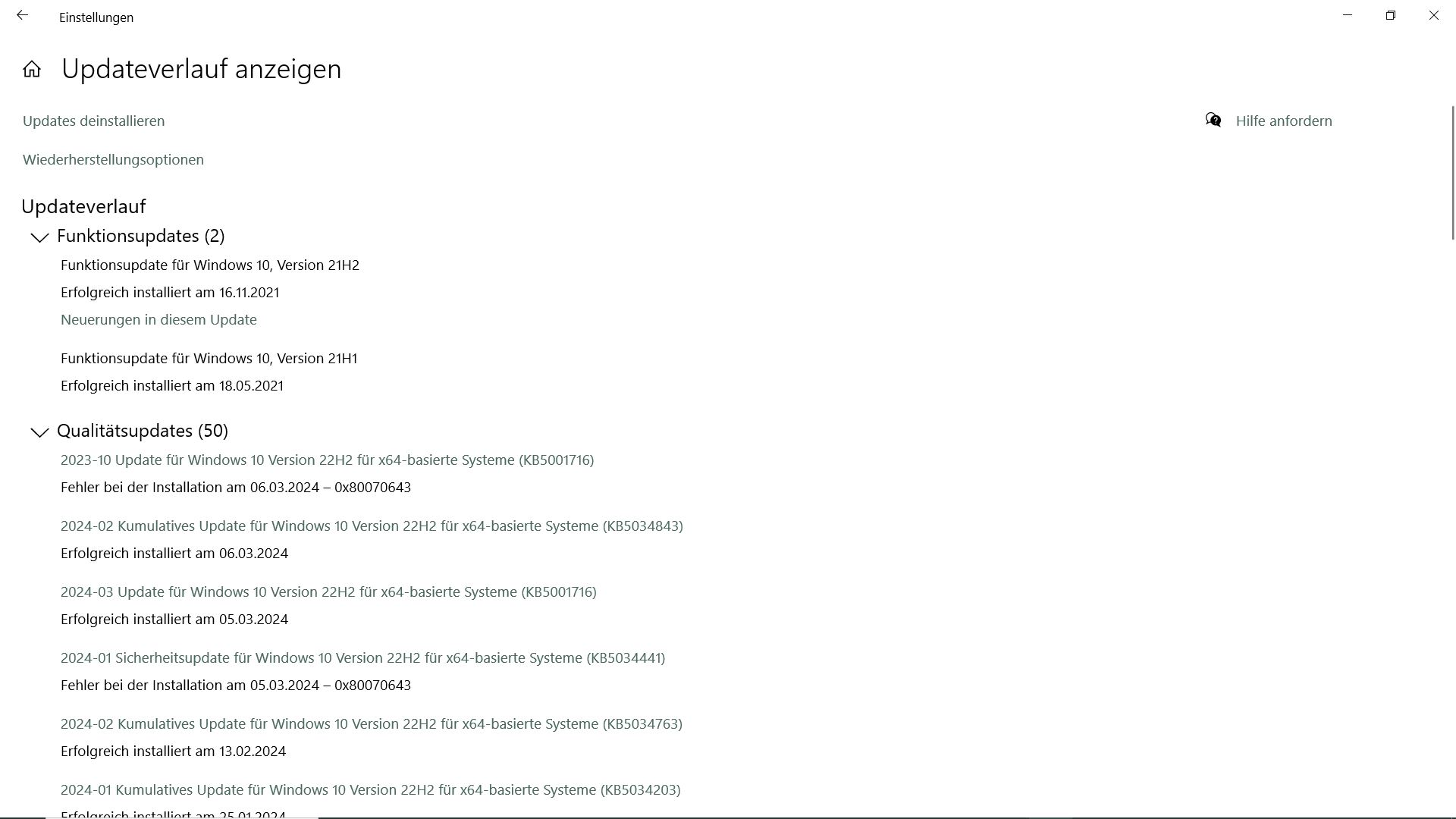 Ich hatte noch nie so viele Updatefehler. Zuletzt hatte ich so viele Probleme mit Windows 7.