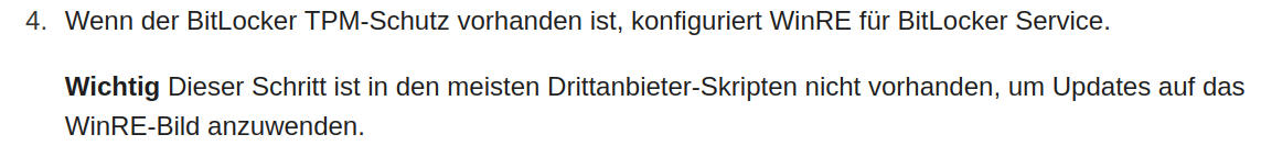 Kurze Frage: Bei mir bricht es ebenfalls mit 0x80070643 ab. Wenn man nun über die Kommandozeile die Partitionsgröße von WinRE verändert (wie ja vorgeschlagen), muss man offenbar durch