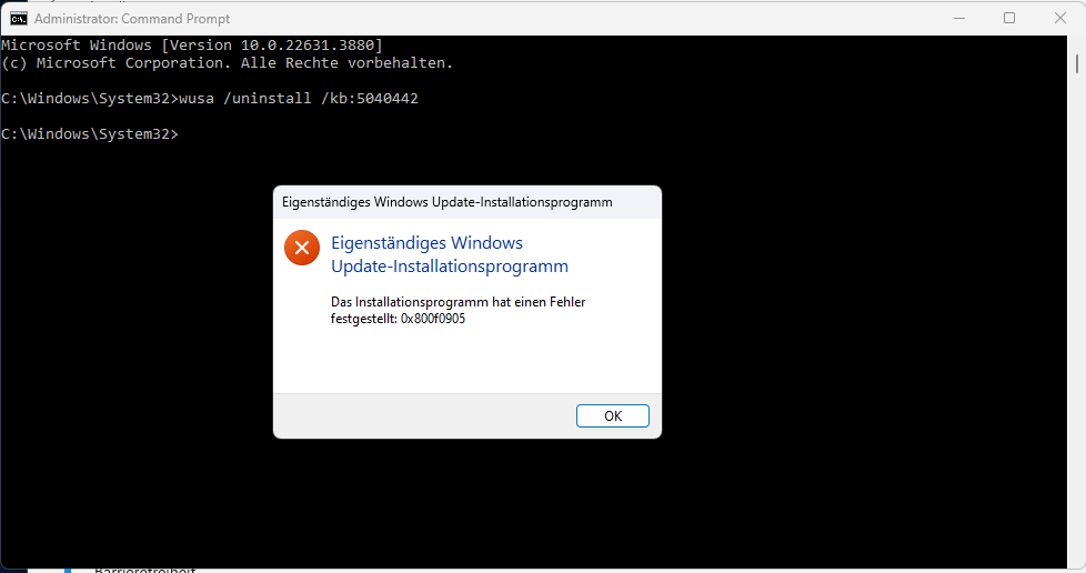 ich glaube ich habe Probleme mit diesem Update: KB5040442 um das zu testen würde ich gerne dieses Update mal entfernen.
