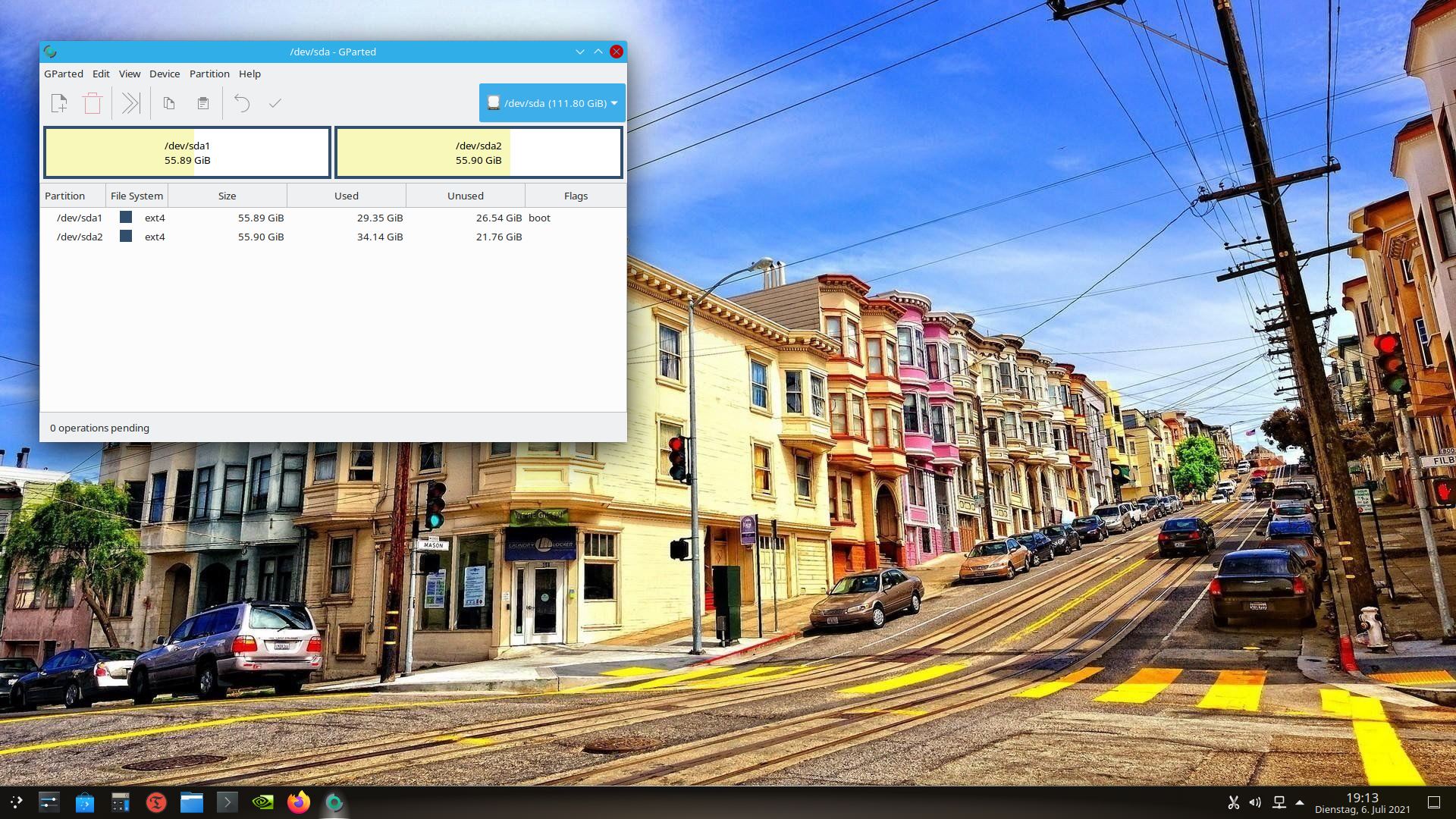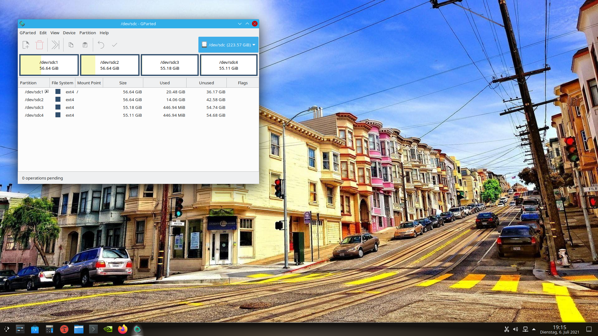 Die ssd_1 hat 120GB und die ssd_2 hat 240 GB. Die Partitionen habe ich immer so knappe 60GB groß gemacht.