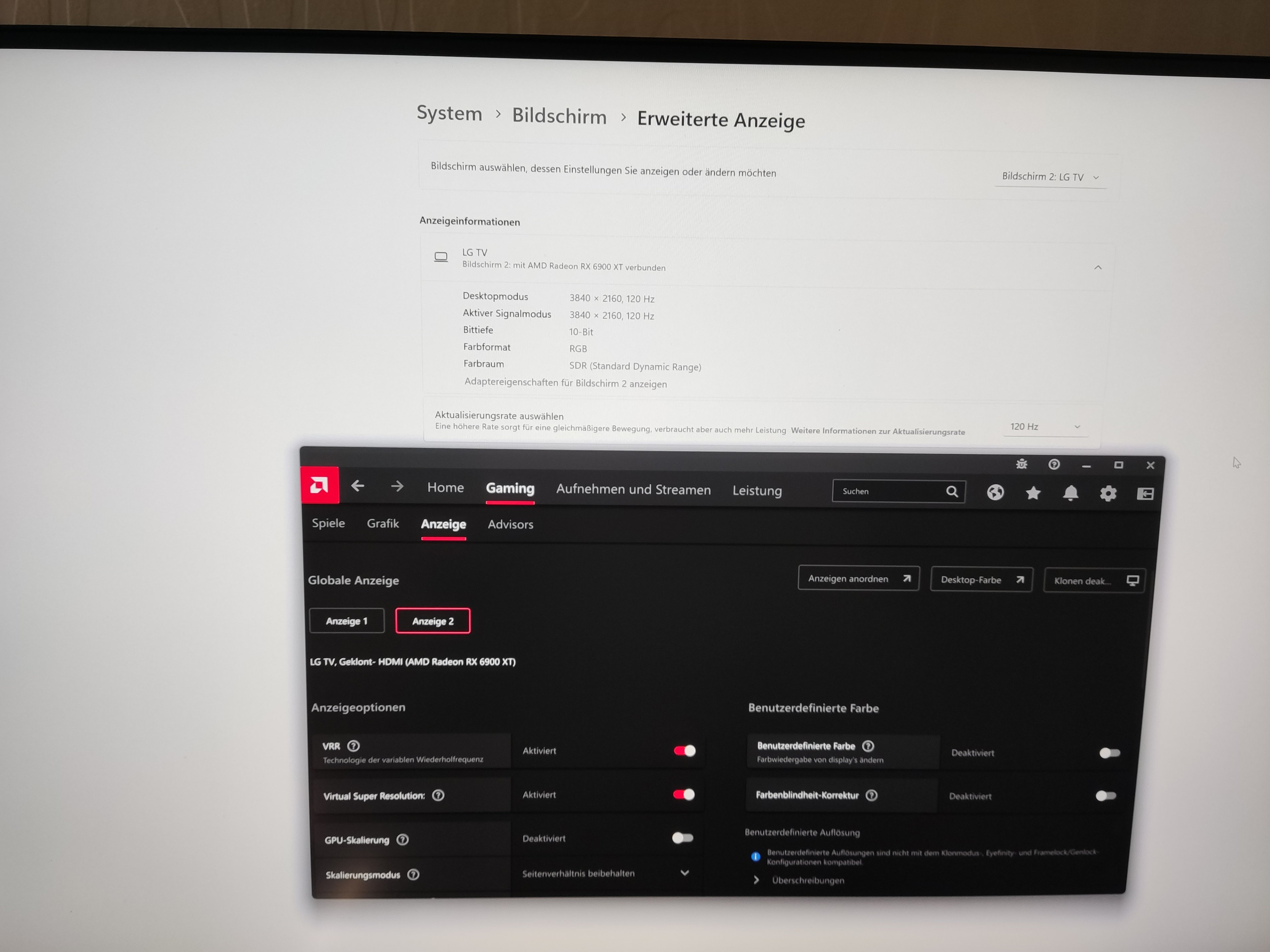 Mir wird einfach seitens Windows nicht mehr als 60Hz als Aktualisierungsrate angezeigt. Dies auch unabhängig davon, ob der Monitor abgestöpselt ist und nur der TV drin steckt.