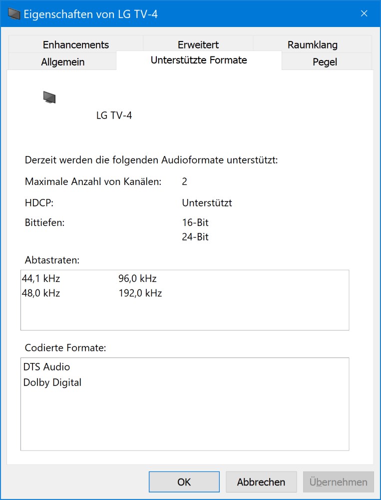 Geforce 1060 per HDMI an TV (LG B6D) per HDMI (ARC) an AVR (Yamaha RX-V 473)