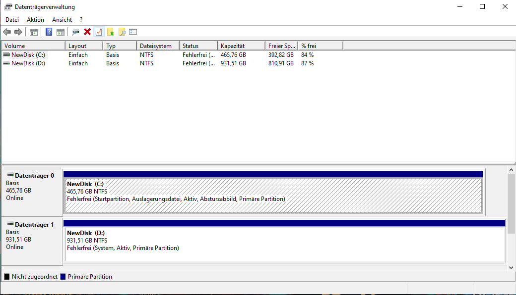 Allerdings scheint der PC beim Hochfahren das Betriebssystem nicht zu erkennen. Nach dem wechseln der Boot Priorität im BIOS von der 500GB SSD-Festplatte auf die 1000GB Festplatte (auf welcher sich Windows allerdings nicht befindet, da ich es auf die 500GB gepackt habe) erkennt er Windows zwar und es scheint die meiste Zeit alles normal zu funktionieren bis mir mein PC hin und wieder beim Hochfahren das selbe ursprüngliche Problem wieder ausgibt (kein Betriebssystem gefunden).